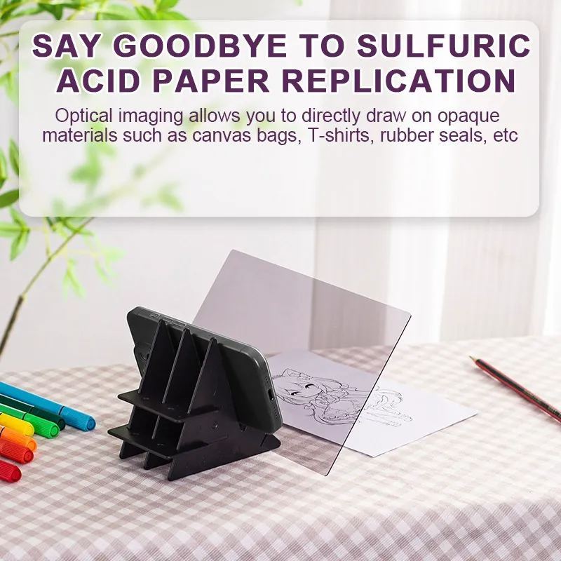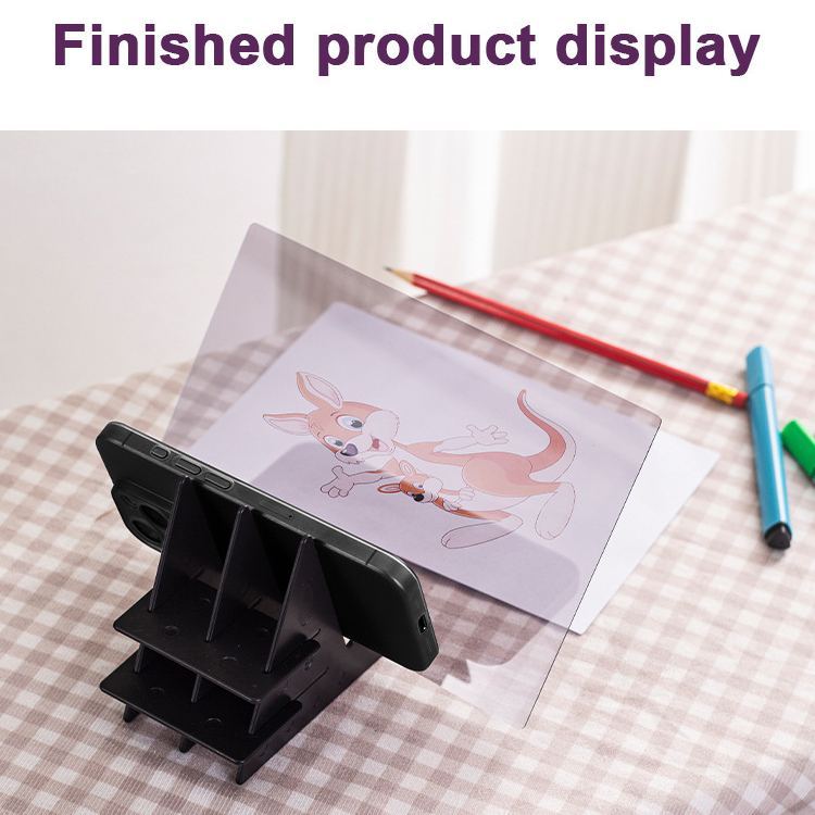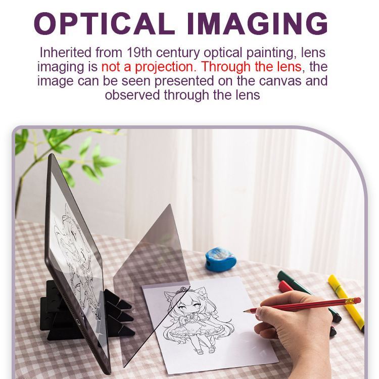 El soporte ajustable se adapta a la mayoría de los teléfonos y tabletas, con una proyección óptica clara que conserva los detalles sin distorsión. Es liviano y portátil, perfecto para estudios en el hogar, aulas o creatividad en movimiento, convirtiendo cualquier cuaderno de bocetos o tablero de dibujo en un espacio de trabajo versátil.
