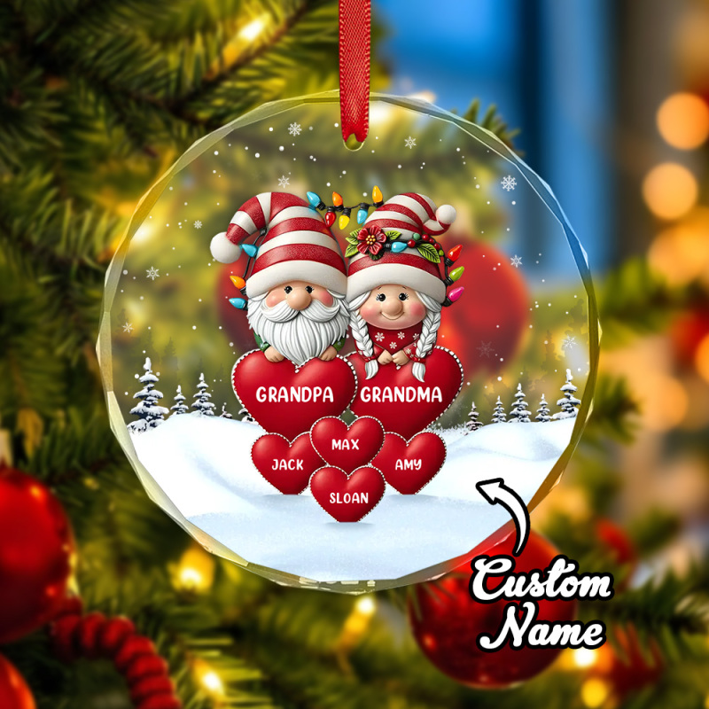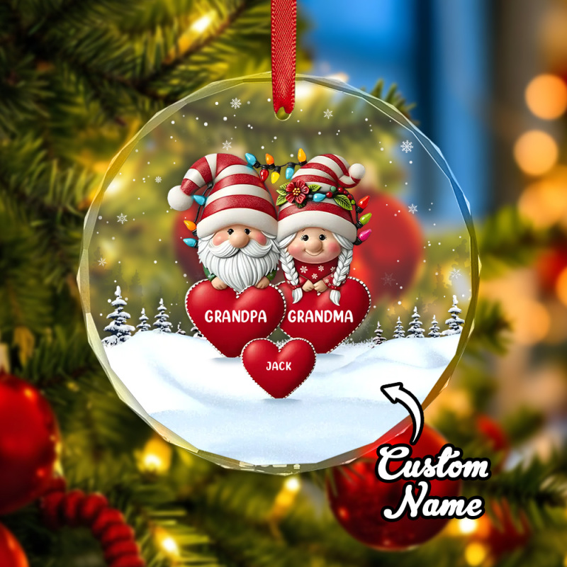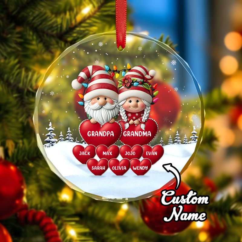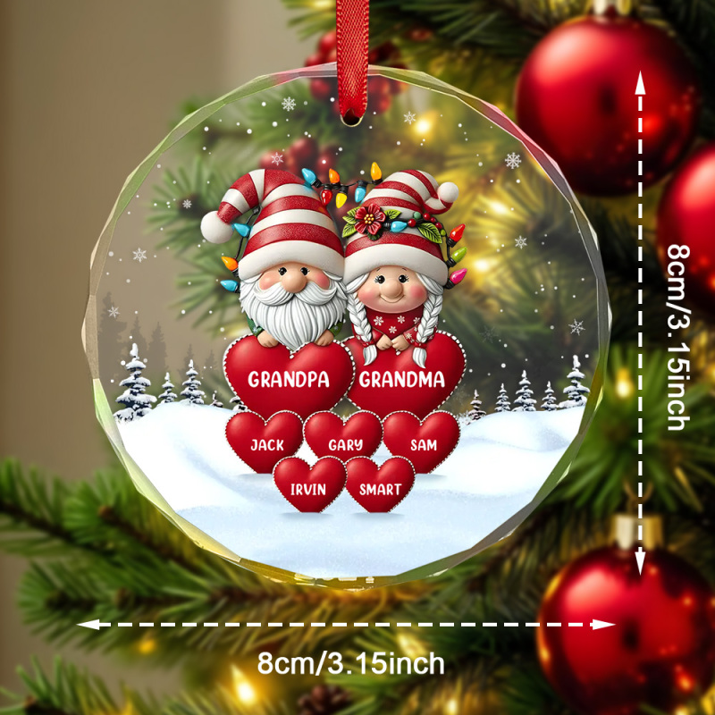 Celebre la temporada navideña con estilo con nuestro adorno de vidrio circular personalizado para la familia. Este adorno bellamente elaborado es un regalo de Navidad único y reflexivo para el abuelo y la abuela. Personalízalo con los nombres de tu familia o un mensaje especial, convirtiéndolo en un recuerdo preciado que atesorarán en los años venideros. El elegante diseño de vidrio captura la magia de la Navidad y su estilo versátil se adapta perfectamente a cualquier decoración navideña. Muestre su amor y aprecio con este sincero adorno, perfecto para colgar en el árbol o exhibirlo en su hogar. ¡Haz que esta Navidad sea inolvidable con un toque personal que caliente el corazón!