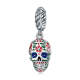 Charm Colgante con Cabeza de Calavera y Flor en Plata