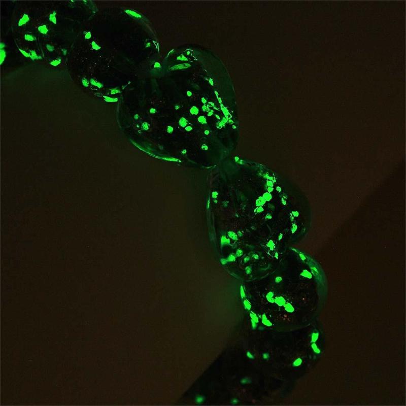Pulsera Elástica Con Cuentas De Cristal De Luciérnaga De Corazón A Corazón Verde Hierba Que Brilla En La Oscuridad Pulsera Luminosa