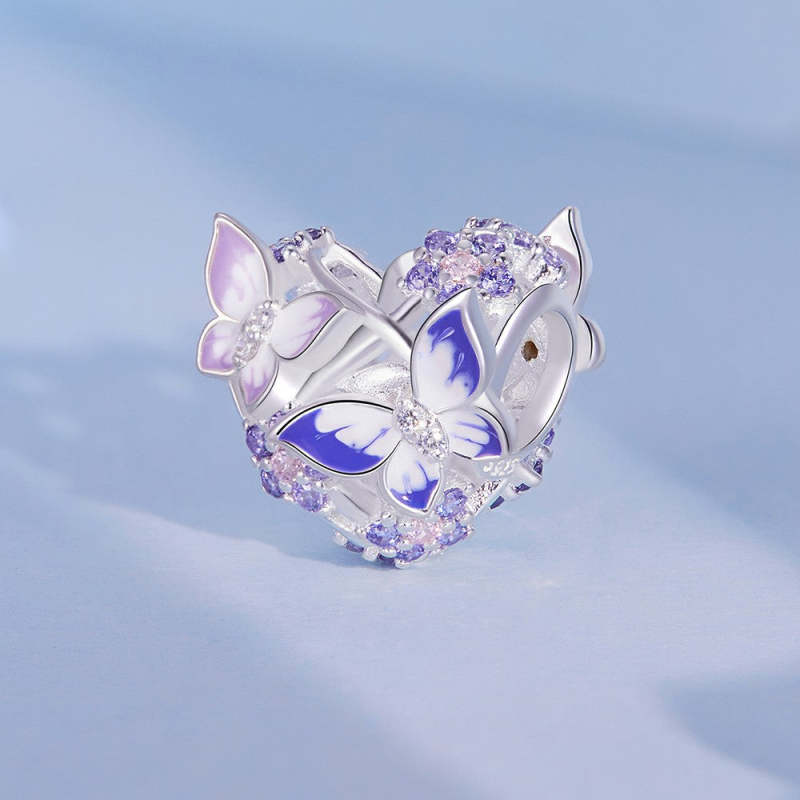 Ciondolo Farfalla A Forma Di Cuore Argento