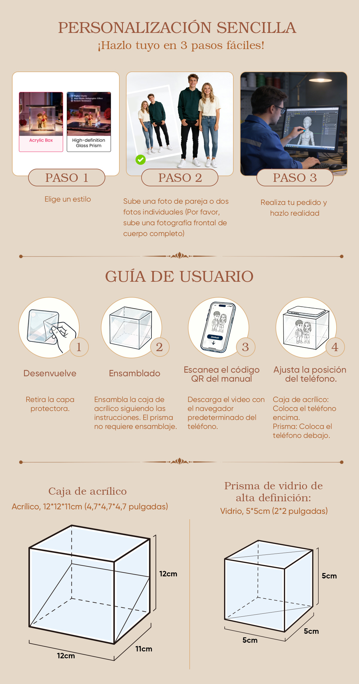 Sube tus fotos para obtener un efecto holográfico 3D único que refleja fielmente tu historia con cada detalle.