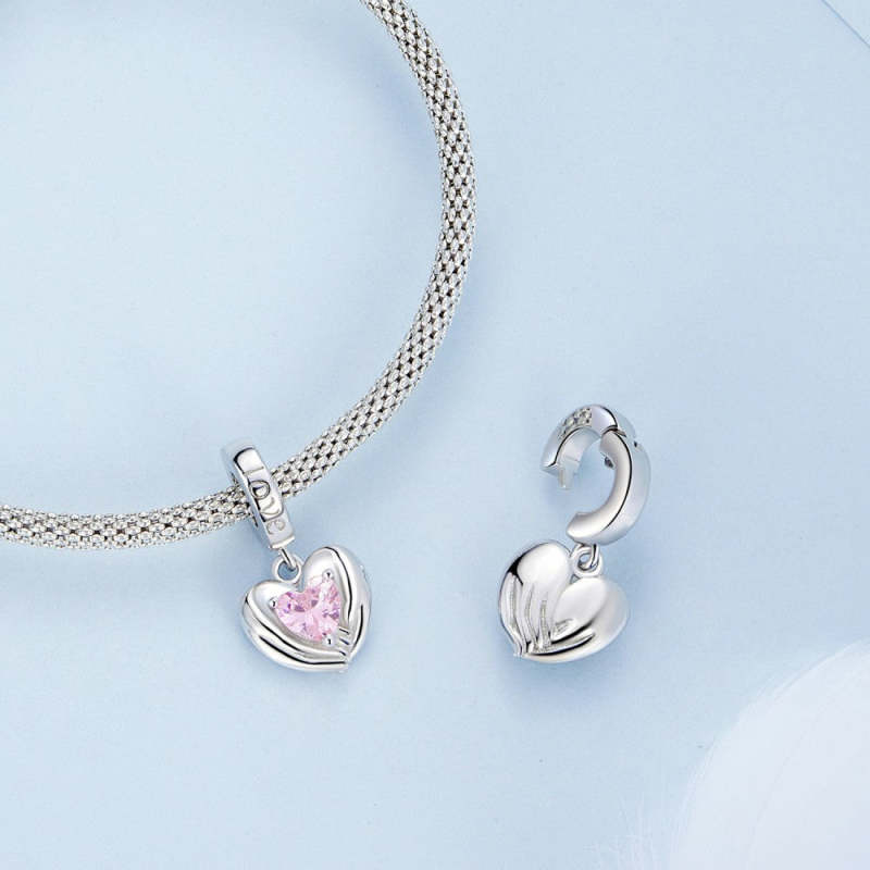 Charm Colgante Corazón Rosa Amor y Protección Plata