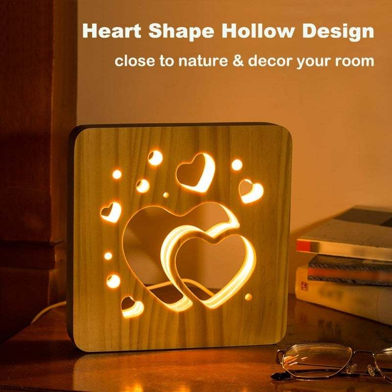 La luz de noche con forma de corazón de madera está hecha de materiales de madera de pino de alta calidad, livianos y robustos, sin olor acre. Diseño de la combinación de tradicional y moderno, elegante y moderno, simple y elegante. Esta lámpara de amor no solo tiene un efecto de iluminación sino también un buen efecto decorativo. El diseño es elegante e interesante, los elementos de iluminación están incrustados en el marco hueco, de modo que las luces nocturnas brillan cálidamente.