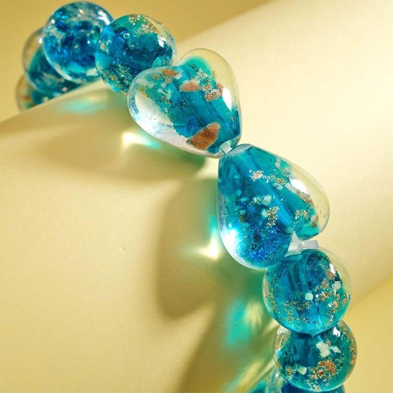 Pulsera Elástica Con Cuentas De Cristal De Luciérnaga De Corazón A Corazón Azul Marino Que Brilla En La Oscuridad Pulsera Luminosa