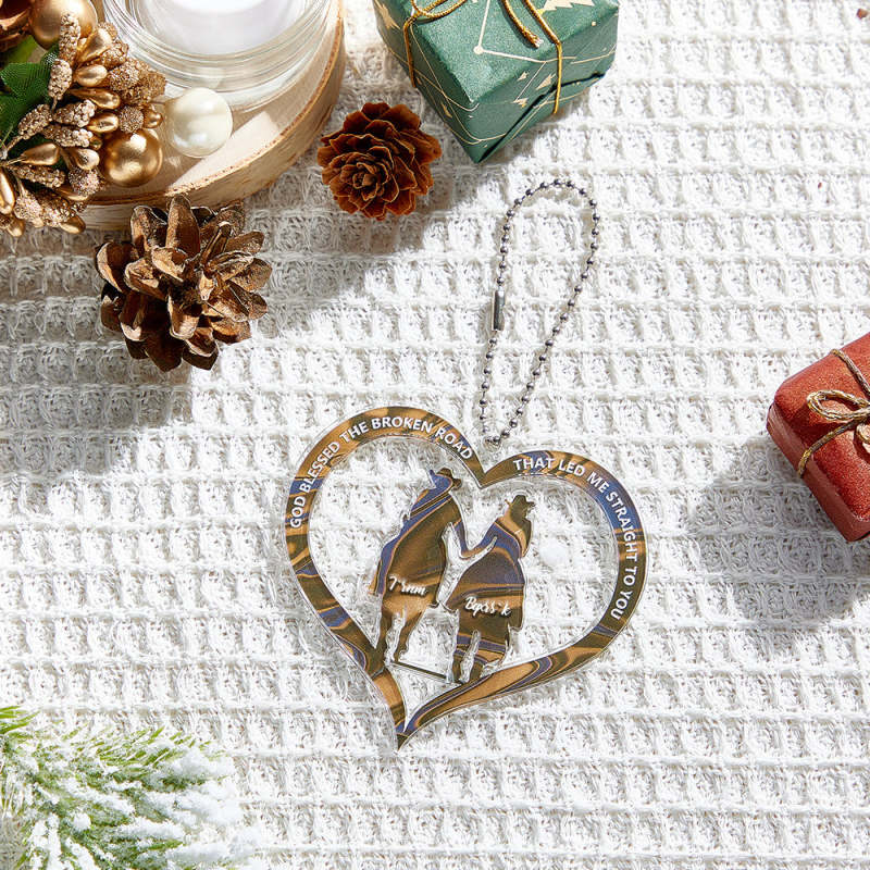 Este adorno personalizado de vaquero y vaquera tomados de la mano, bendito por Dios, es el regalo perfecto para parejas. Este significativo adorno presenta un diseño encantador que captura el amor y el vínculo entre dos personas. Haz un regalo que realmente refleje la conexión especial entre dos personas.