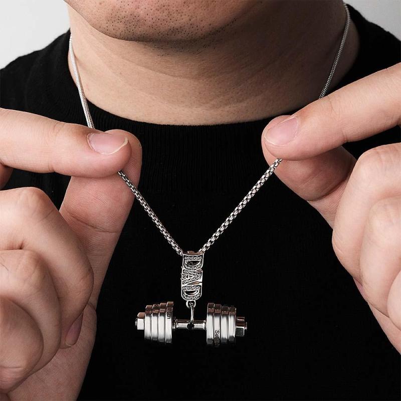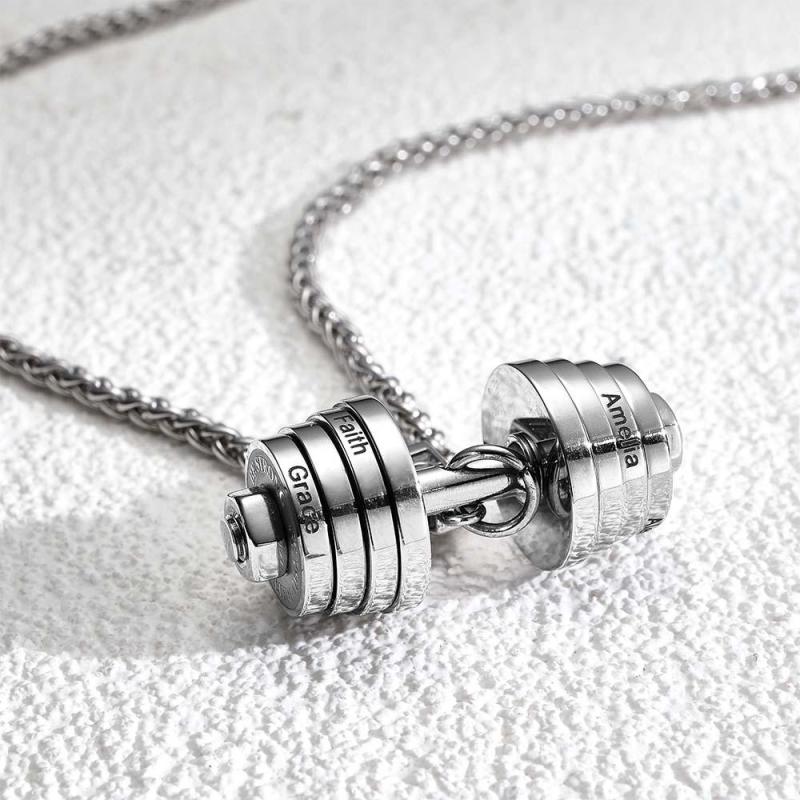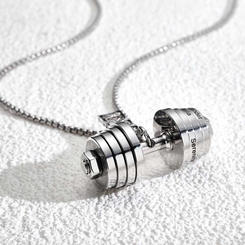 Este collar está especialmente diseñado para el Día del Padre. El tema destaca el colgante con mancuernas. Se puede personalizar un texto simple en la mancuerna, como el nombre del padre o las bendiciones, para agregar personalización y significado conmemorativo.