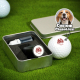 Este exclusivo sello de pelota de golf autoentintable presenta un retrato personalizado de tu perro o gato, junto con su nombre o una fecha especial; perfecto para marcar tus pelotas de golf con estilo.