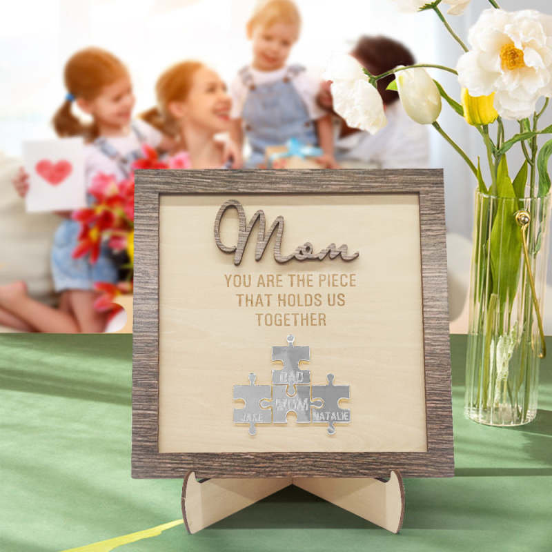 Para el romance y los mimos de esta vida, debes dejar una copia de tu madre. Con motivo del Día de la Madre, envíele a mamá una placa con el letrero del rompecabezas de los nombres de los niños. Y proclame con orgullo 'Tú eres la pieza que nos mantiene unidos' a mamá. Este regalo toca a su madre o esposa más que cualquier promesa y la hará feliz como un niño.