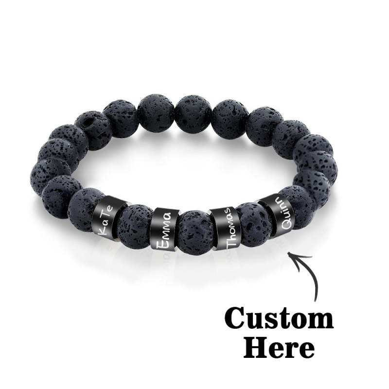 Esta pulsera de cuentas de piedra de lava negra con nombre personalizado es una excelente idea de regalo para cumpleaños, Día del Padre, Acción de Gracias, Navidad o más, ¡durabilidad útil para cualquier ocasión! ¡Con esta increíble pulsera de cuentas podrás impresionar a la persona que amas! Puedes personalizar de 1 a 4 nombres en esta pulsera.