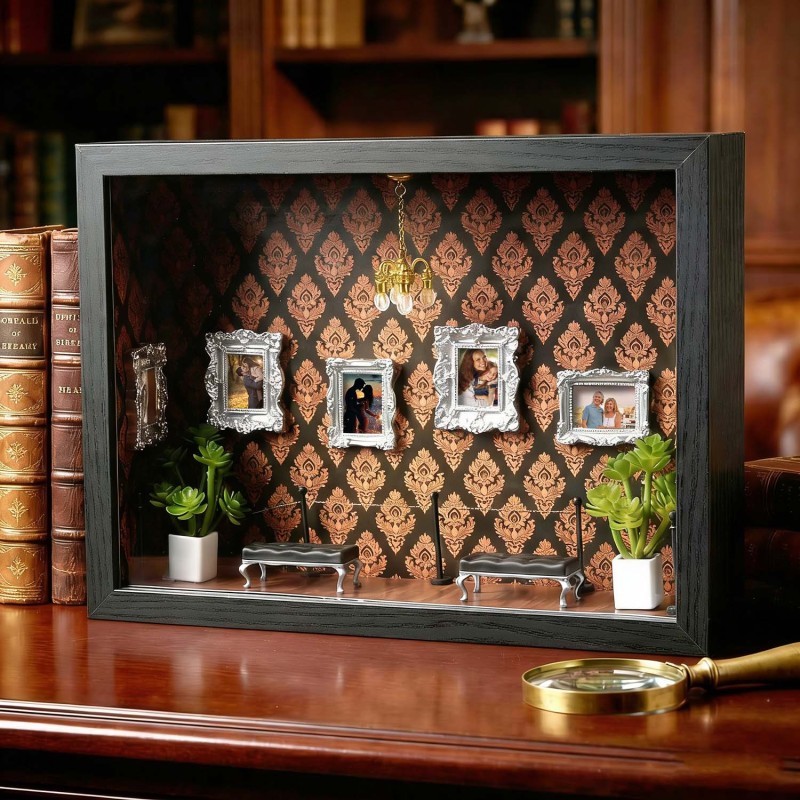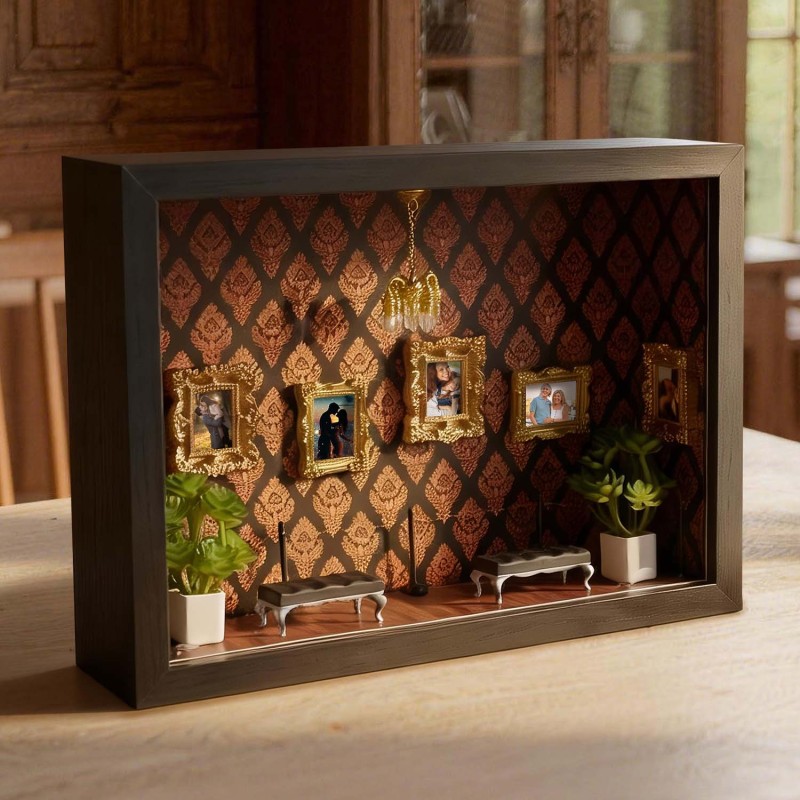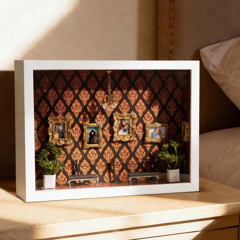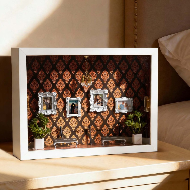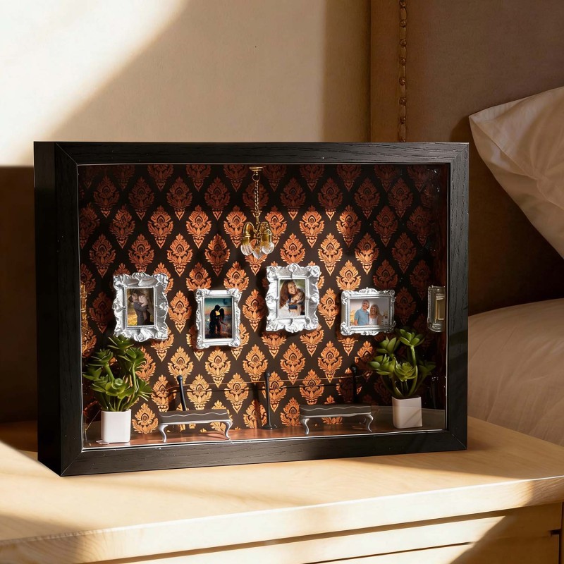¡Celebra tu historia con tu pareja! Esta caja de sombras personalizada es un recuerdo único, diseñado para demostrar tu amor por esa persona especial.Cada caja de sombras está cuidadosamente diseñada con elementos simbólicos que reflejan la historia familiar y personal. Ya sea para regalar o para exhibir en tu hogar, esta pieza cuenta una historia poderosa: la tuya.Perfecta para cumpleaños, graduaciones, inauguraciones, celebraciones culturales o como un detalle especial.Tamaño y detalles:Aprox. 23 x 6,5 x 31,6 cm.Nota: Para evitar que las miniaturas se caigan debido a golpes durante el transporte, se empaquetan por separado. Los clientes deberán ensamblarlas al recibirlas. El paquete incluye una barra de pegamento.