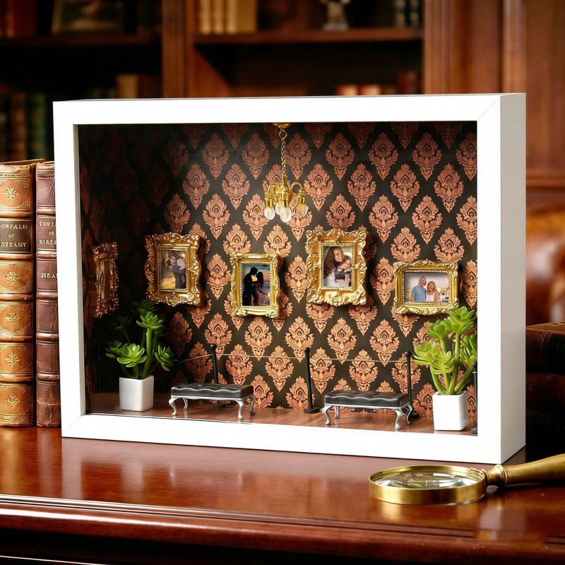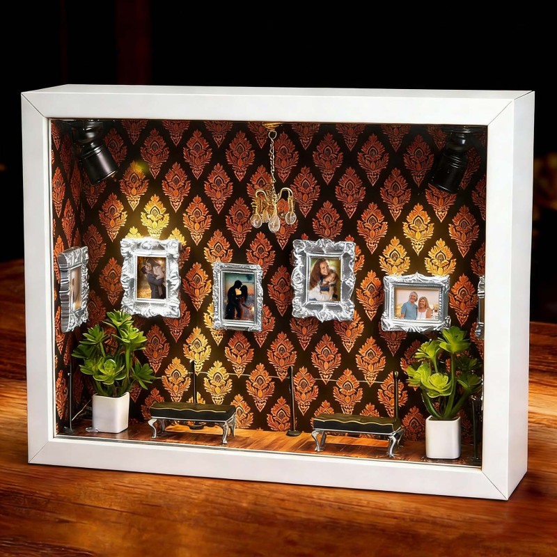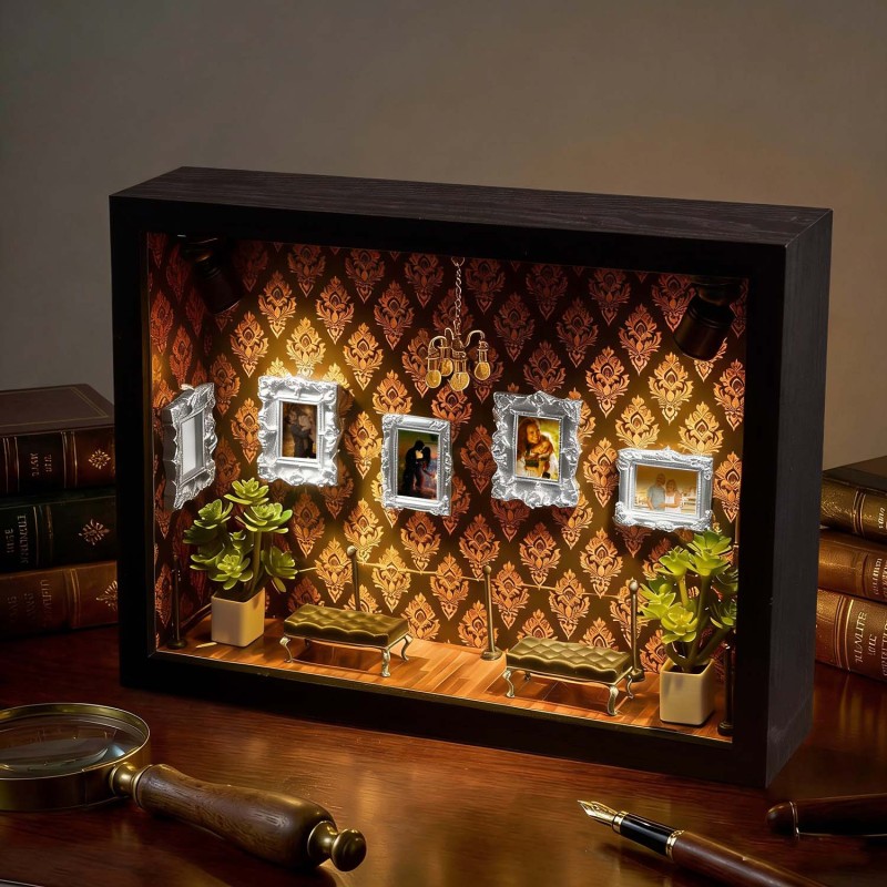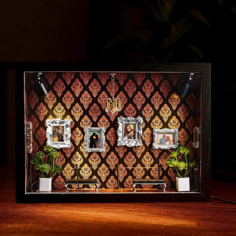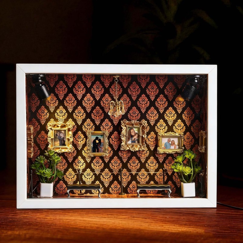 ¡Celebra tu historia con tu pareja! Esta caja de sombras personalizada es un recuerdo único, diseñado para demostrar tu amor por esa persona especial.Cada caja de sombras está cuidadosamente diseñada con elementos simbólicos que reflejan la historia familiar y personal. Ya sea para regalar o para exhibir en tu hogar, esta pieza cuenta una historia poderosa: la tuya.Perfecta para cumpleaños, graduaciones, inauguraciones, celebraciones culturales o como un detalle especial.Tamaño y detalles:Aprox. 23 x 6,5 x 31,6 cm.Nota: Para evitar que las miniaturas se caigan debido a golpes durante el transporte, se empaquetan por separado. Los clientes deberán ensamblarlas al recibirlas. El paquete incluye una barra de pegamento.