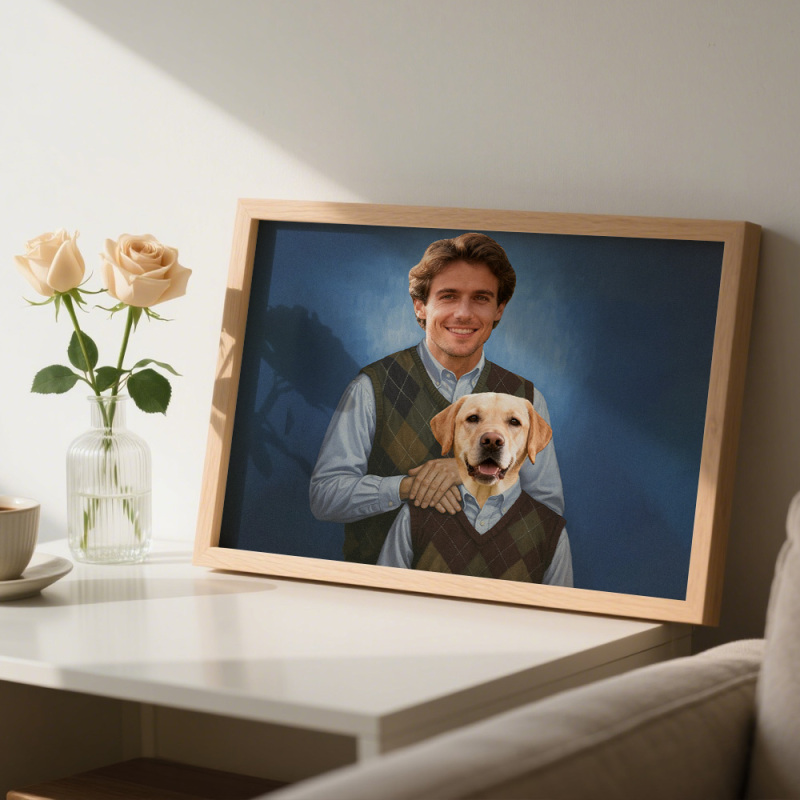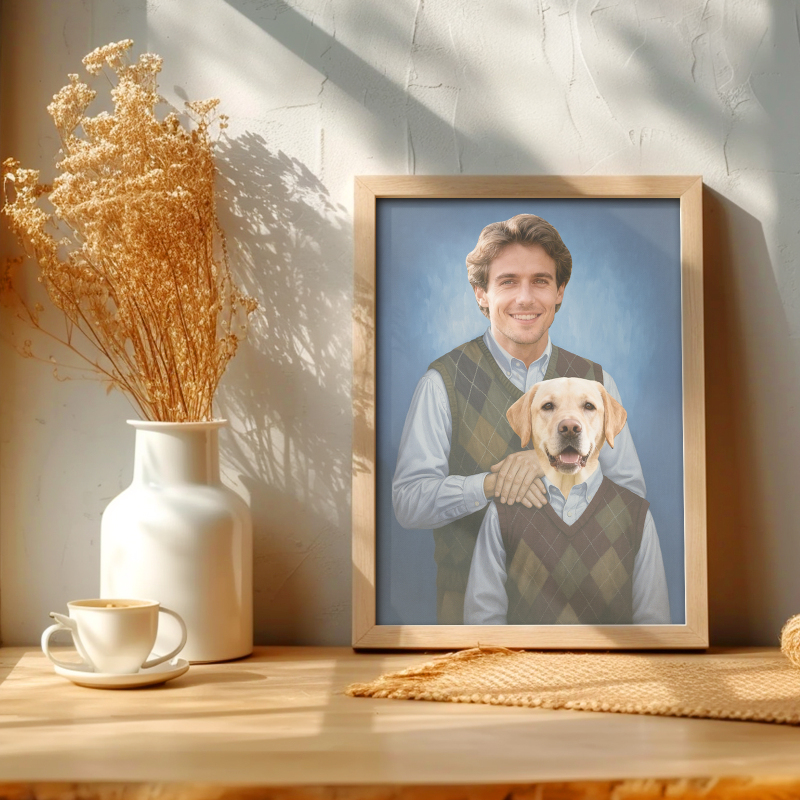 ¡Celebra el amor, la alegría y la lealtad entre tú y tu mascota con este retrato personalizado único!