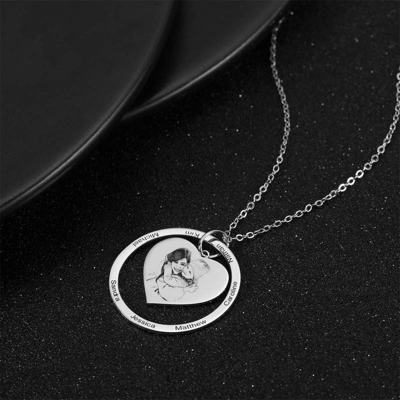 El grabado de fotos es la nueva tendencia más querida, ya que le permite recordar su foto favorita en una pieza de joya que puede usar todos los días. Este collar con foto grabada es el telón de fondo perfecto para su foto favorita. Agregue un nivel adicional de personalización colocando un grabado en la parte posterior de este colgante grabado con foto. ?El perfecto regalo pensativo, divertido y único para cualquier ocasión! Soufeel tiene un montón de opciones de joyas personalizadas que tienen un precio razonable y son excelentes regalos para todos tipos de ocasiones como cumpleaños, días festivos, aniversarios.Collar Grabado Con Foto De La Forma Corazón En Colgante Redondo, Collar De La Familia Chapado En Platino - Plata