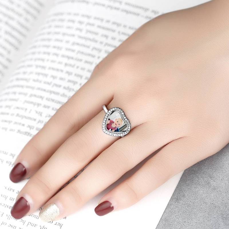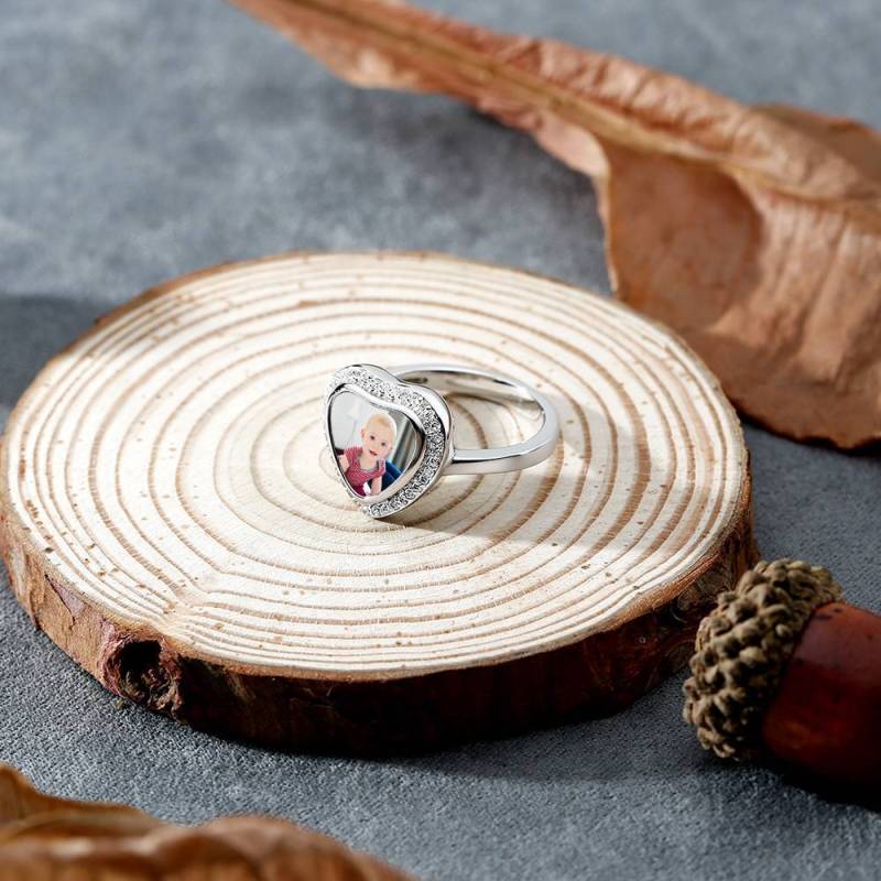 Anillo Foto Corazón Plata Y Zicron Siempre Te Amo