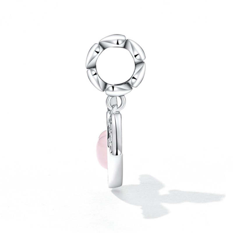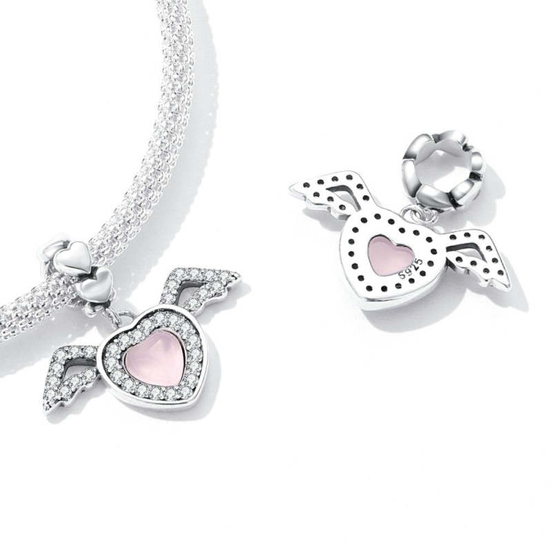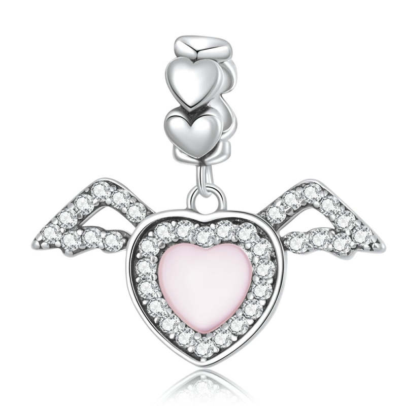 Charm Colgante Corazón Rosa con Alas Plata