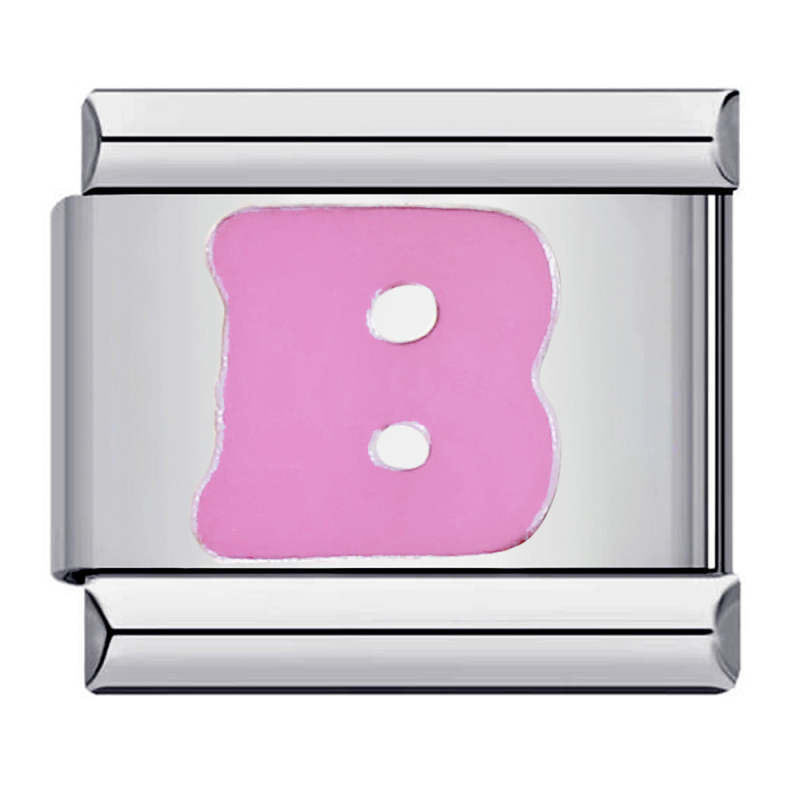 Charm Italiano Letra B Rosa Para Pulseras Charm Italianas Link Composable