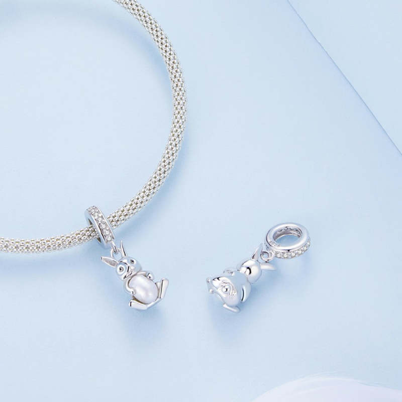 Charm Colgante Con Perla Abrazo De Conejo Plata