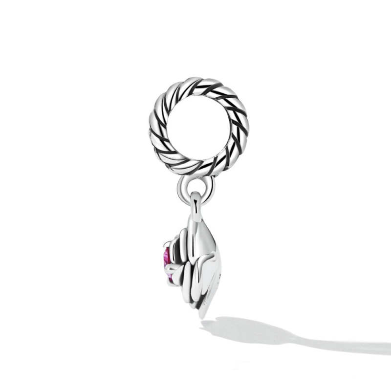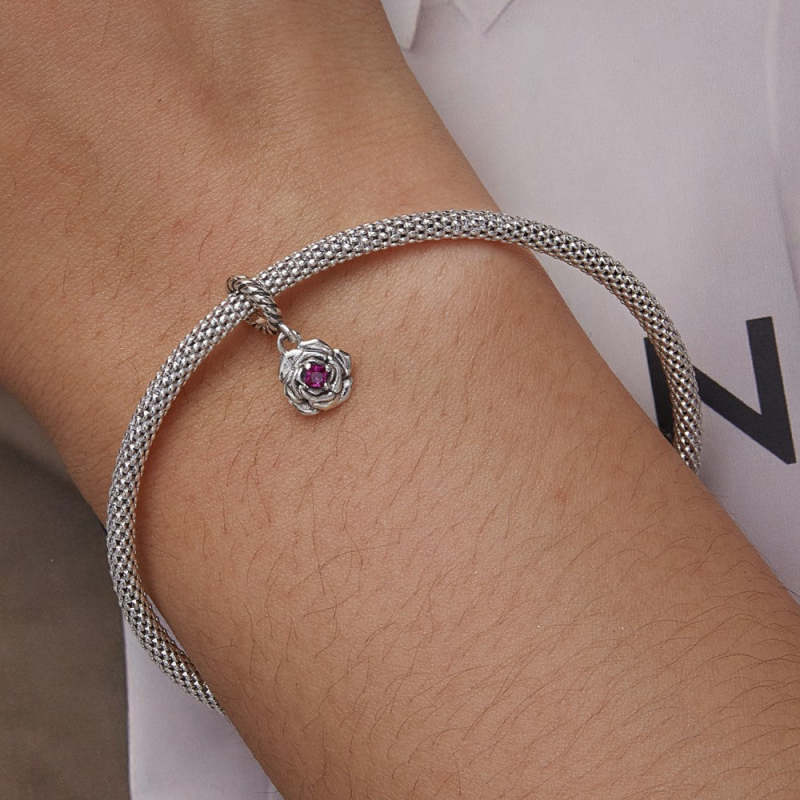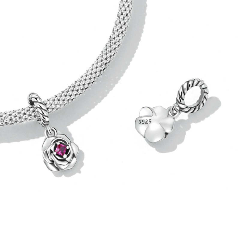 Charm Colgante Rosa con Circón Rojo Rosa Plata
