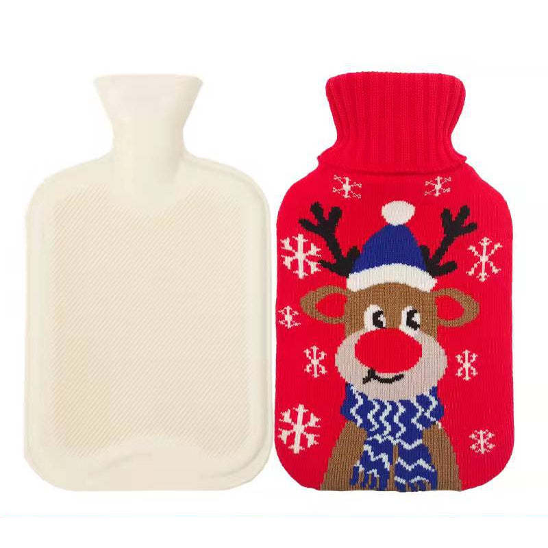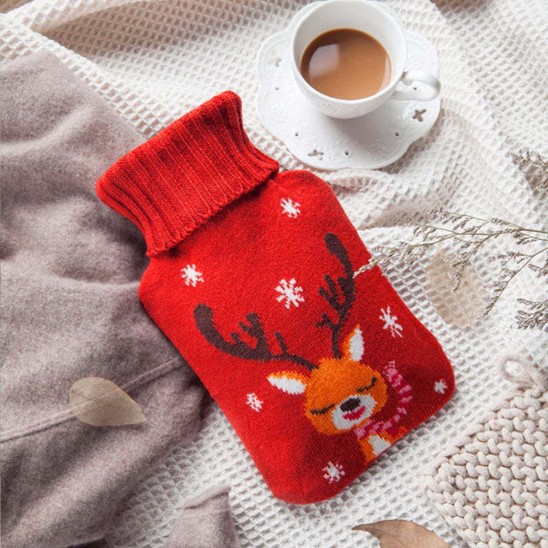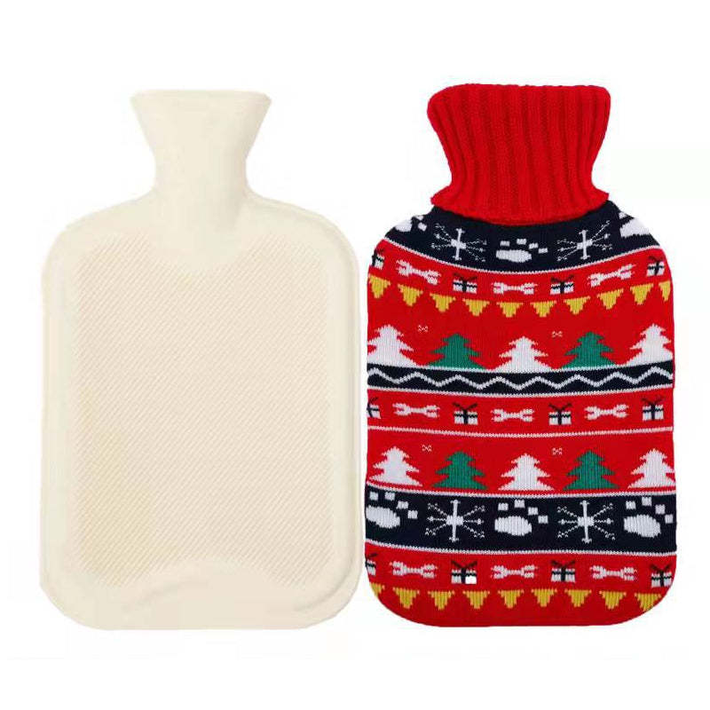 Botella De Agua Caliente De Goma Con Cubierta De Punto De Patrón Navideño Para Aliviar El Dolor Terapia De Frío Y Calor