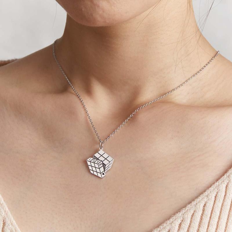 ¿Estás buscando un regalo muy especial?¿Qué tal este precioso collar colgante de plata de ley con el famoso cubo de SOUFEEL?Colgante de plata de ley brillante pulido a mano.Disponible en plata, oro y oro rosa.El colgante viene con una cadena de plata.Todas las piezas se puede personalizar grabar nombres, iniciales, fechas en la parte posterior a su gusto. Una gran opción de regalo para alguien especial, o simplemente un pequeño regalo para usted.