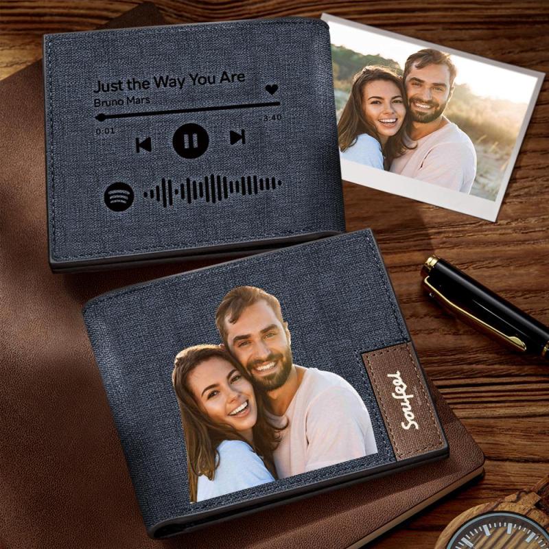 Cartera Con Código De Spotify Escaneable Cartera Con Foto Grabada Regalos Para Novio / Esposo