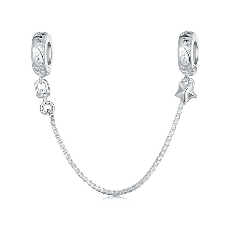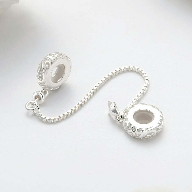 Cadena de dijes de seguridad con patrón simple en plata