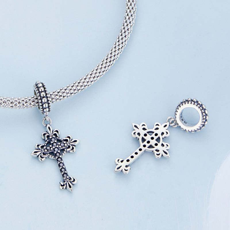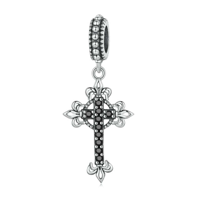 Dije colgante con cruz negra vintage en plata