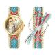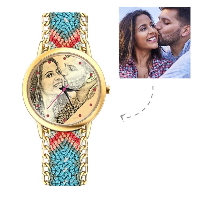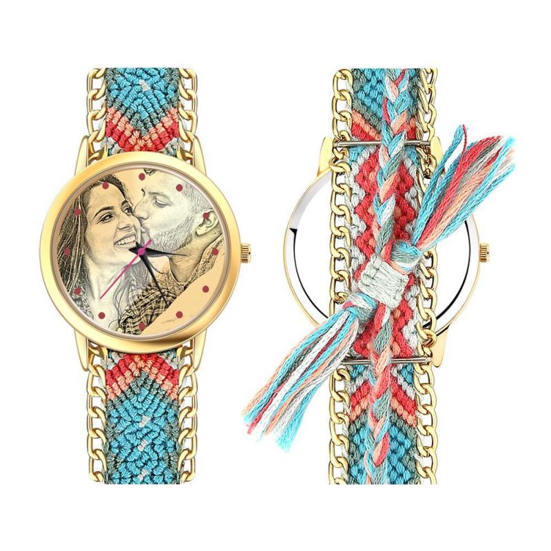 Mujer Oro Reloj Grabable de Foto con Correa de Cuerda Trenzada de Color 40mm
