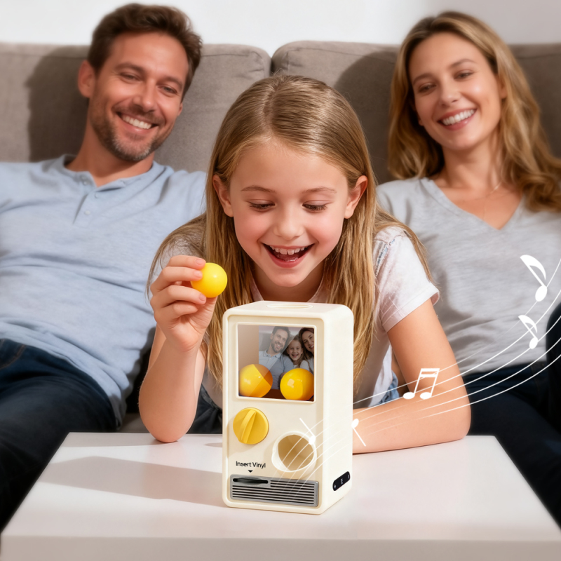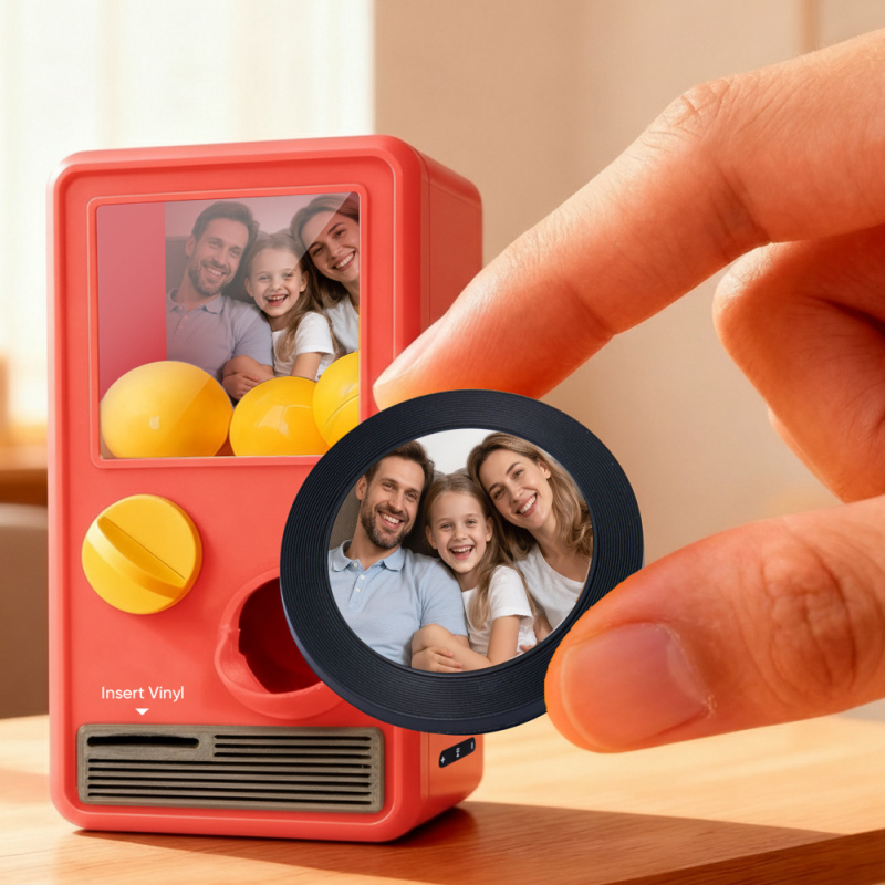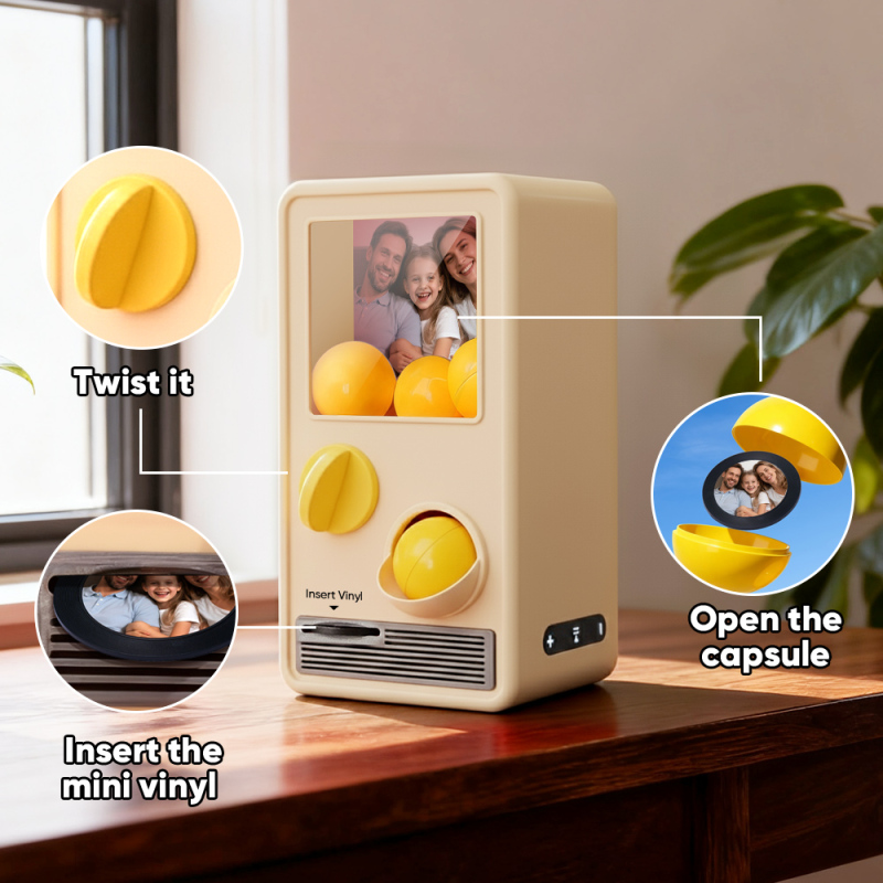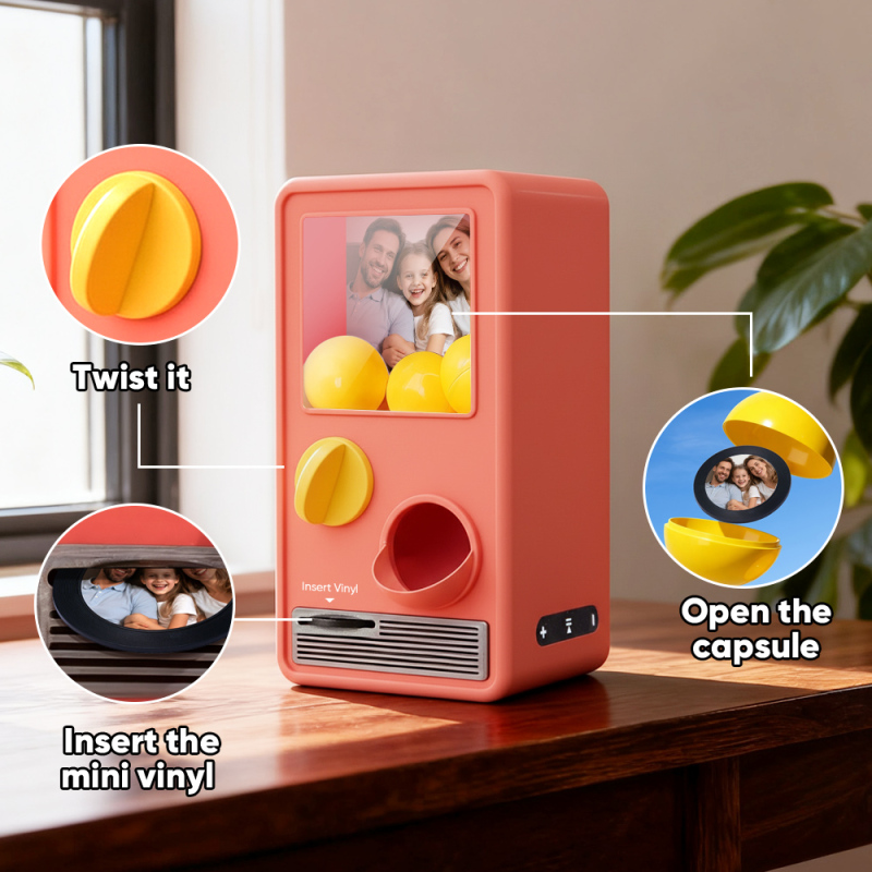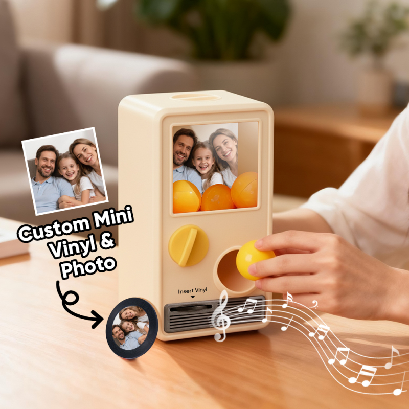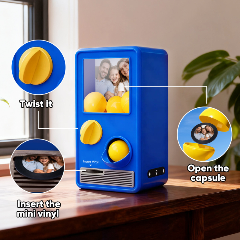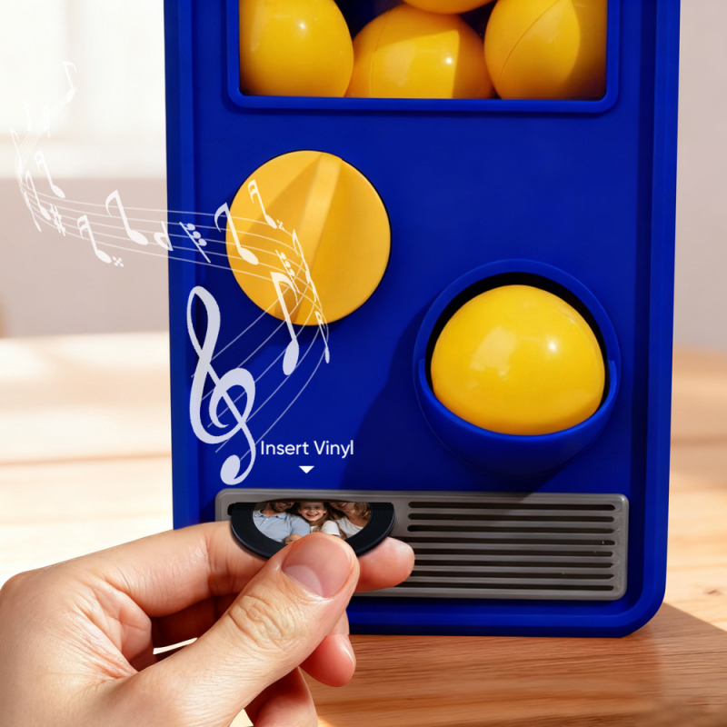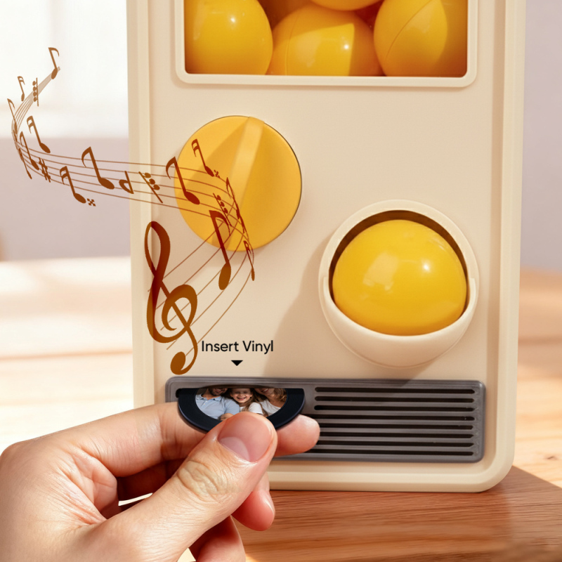 ¡Descubre la alegría de la música y sorpréndete con nuestra Máquina Gachapon Musical! Inspirada en los clásicos dispensadores de cápsulas de juguete, esta encantadora unidad tiene capacidad para 7 bolas gachapon, cada una con un CD único y personalizable en su interior. Personaliza cada disco con una canción especial y una foto significativa, y deja que la máquina dé vida a tus creaciones con reproducción instantánea.