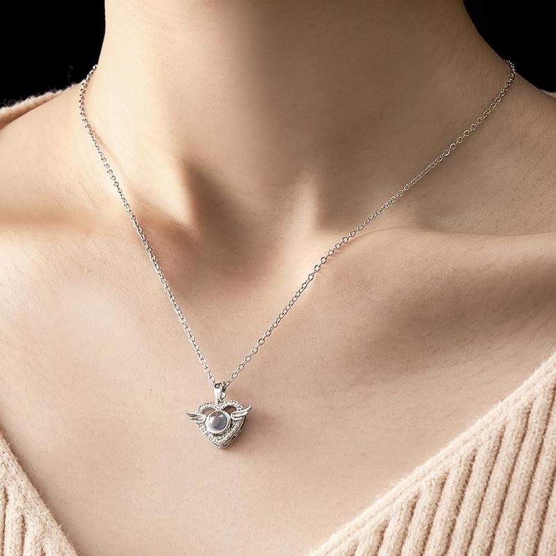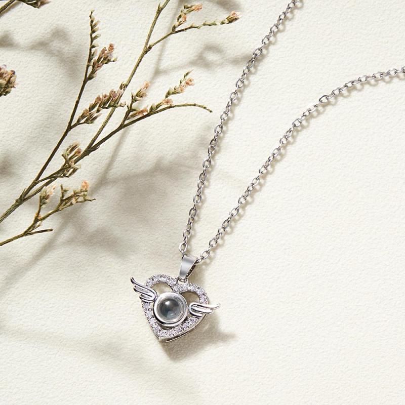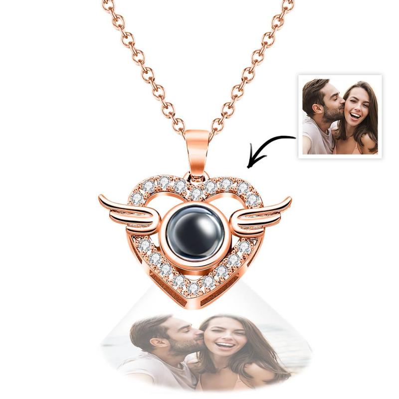 Collar De Proyección De Fotos Con Alas De Ángel, Colgante Elegante En Forma De Corazón, Regalo Para Ella