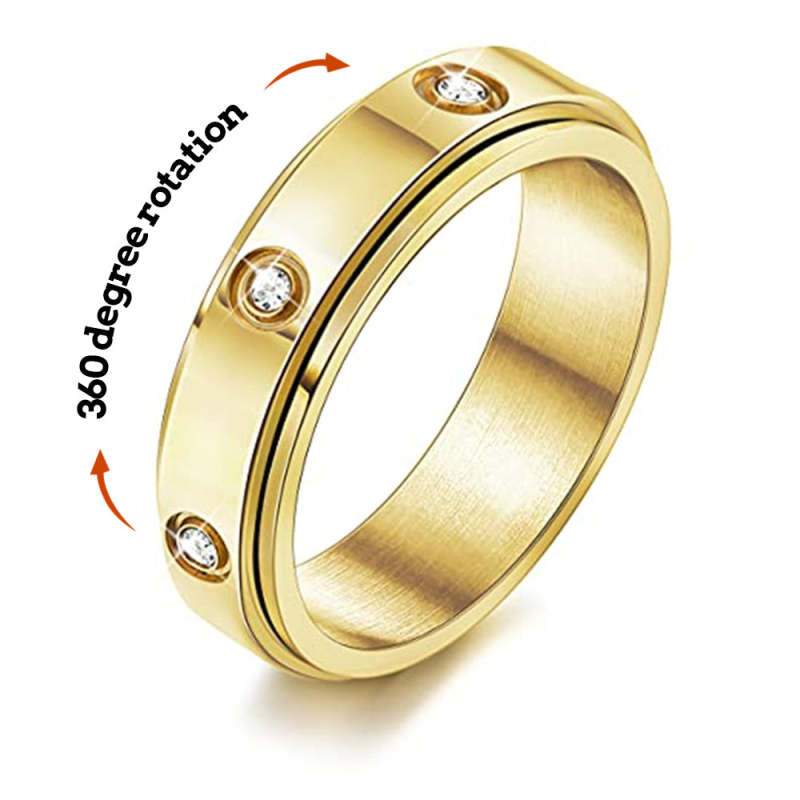 Anillo moderno y moderno, diseño giratorio, perfecto para personas que buscan protegerse de la energía de la ansiedad inquieta. Con el diseño de diamantes Anxiety, el anillo llamará más la atención. Diseño de estilo único, totalmente en línea con el diseño de la estética humana, para mostrar su encanto natural.Hogar, oficina, fiesta y uso diario. Una opción ideal para bodas, aniversarios, regalos del día de San Valentín, día del padre, cócteles, compromisos, cumpleaños. Adecuado para cualquier ocasión.