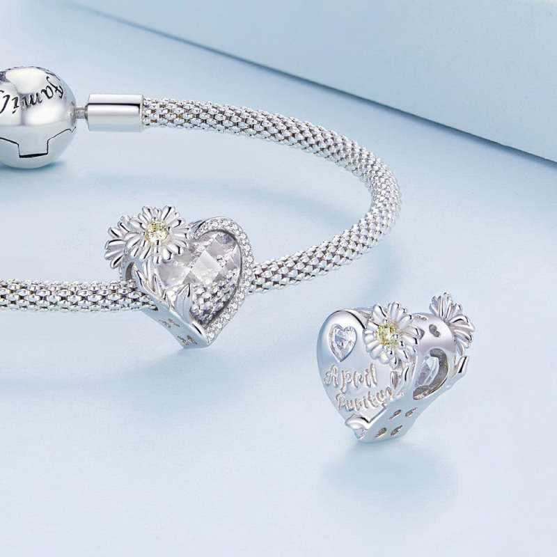 Ciondolo Bianco In Argento Con Pietra Portafortuna Di Aprile