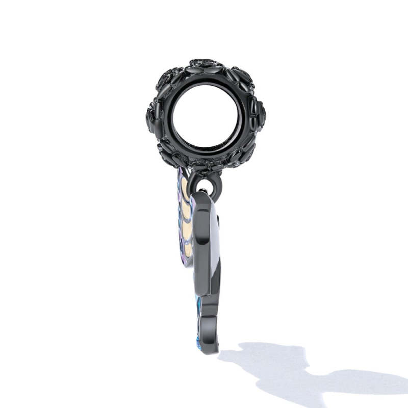 Ciondolo Pendente In Argento Con Farfalla Artistica E Rosa Nera