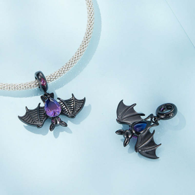 Ciondolo Pendente Pipistrello Nero In Argento