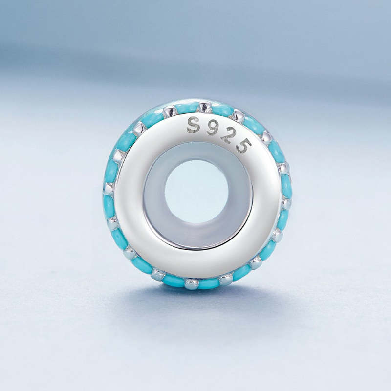 Dije Tapón De Circón Azul Dije Espaciador Plata