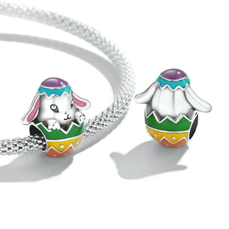 Ciondolo Smaltato Con Uova Di Pasqua Coniglietto Regali Di Pasqua In Argento