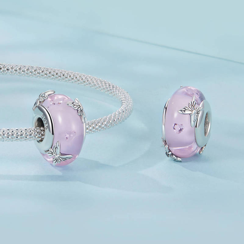 Farfalla Rosa Perline Di Vetro Ciondolo Fermaglio Ciondolo Distanziatore Argento Regali Di Natale
