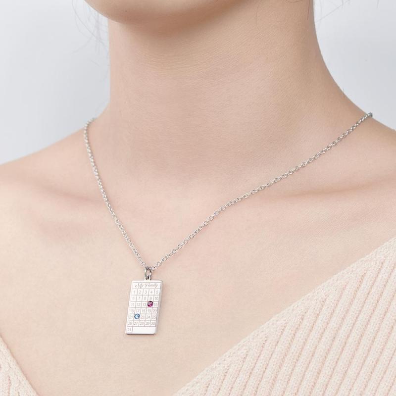 Este exquisito conjunto de joyas incluye collares personalizables en oro, oro rosa y plata. El collar de aniversario es perfecto para un regalo del Día de la Madre, mientras que el collar de cumpleaños incluye una piedra de nacimiento y un calendario grabado para una apariencia única. Perfecto para añadir un toque personal a cualquier ocasión especial.