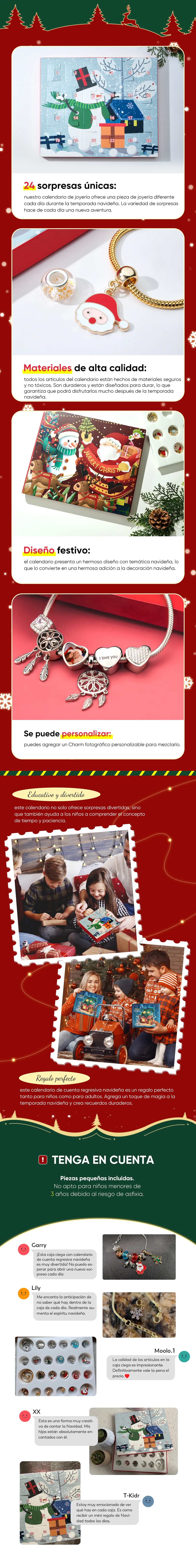 Descripción: Nuestra caja ciega con calendario de cuenta regresiva navideña del Calendario de Adviento de Soufeel es un regalo festivo que agrega emoción a la cuenta regresiva de las fiestas. Con 24 sorpresas diferentes, es el regalo de Navidad perfecto que sigue dando.Calendario de Adviento de Joyería