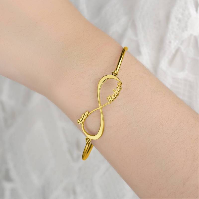 Nombre Ajorca, Brazalete Infinito con Nombre Dos Nombres Chapado en Oro de 14K