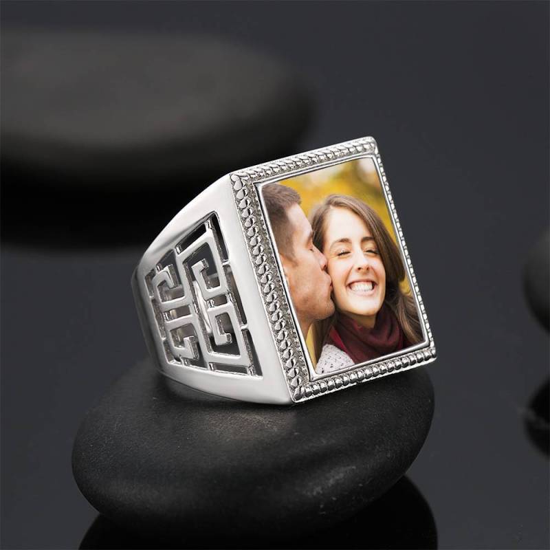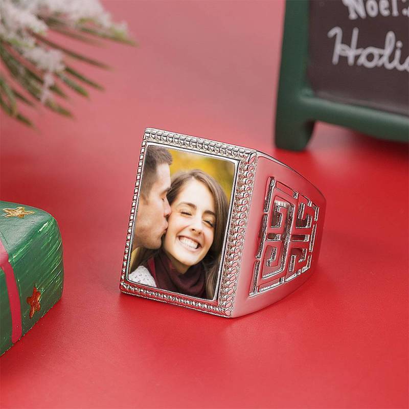 Regalo para Madre Foto Anillo Cuadrado Foto Chapado en Platino
