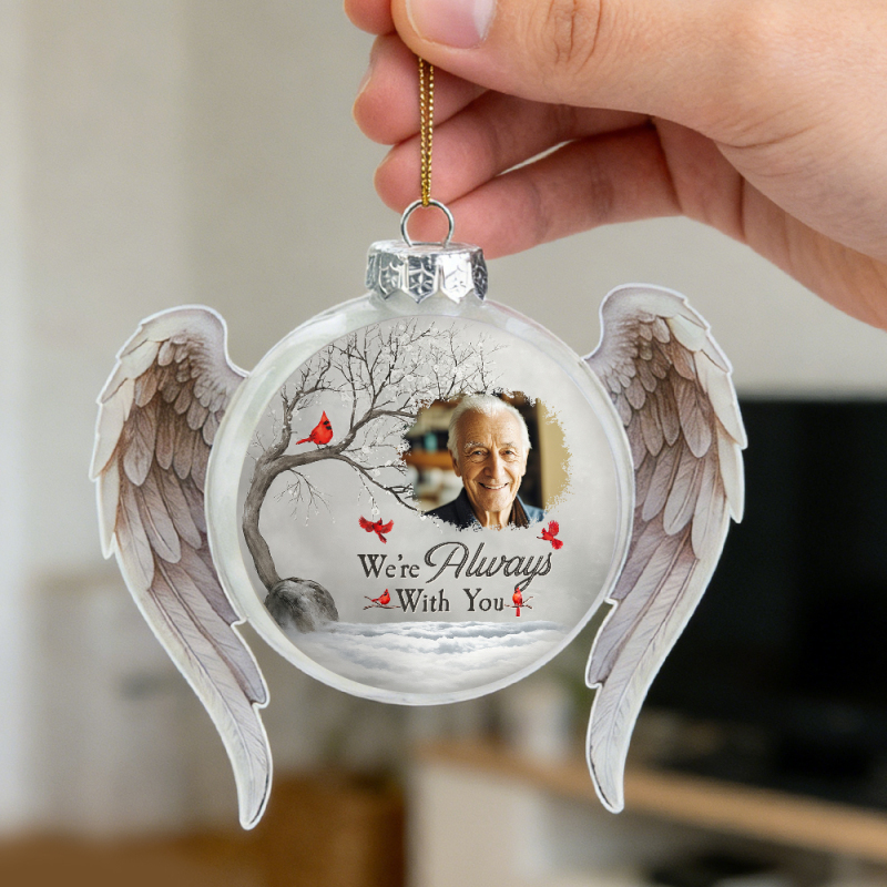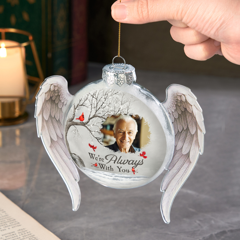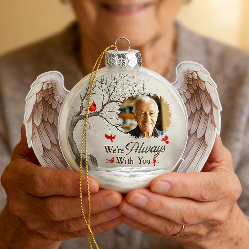 Conserva recuerdos preciados con nuestro adorno con foto personalizado: 'Siempre estoy contigo'. Este adorno con foto conmemorativo personalizado es un recuerdo emotivo y atemporal, diseñado para honrar a un ser querido que ya no está contigo. Simplemente sube tu foto favorita, añade un nombre y nuestros artesanos lo transformarán en un delicado adorno elaborado profesionalmente. Perfecto para árboles de Navidad, exhibiciones conmemorativas o como un regalo de condolencias, este adorno sirve como un suave recordatorio de que el amor perdura más allá de la ausencia.