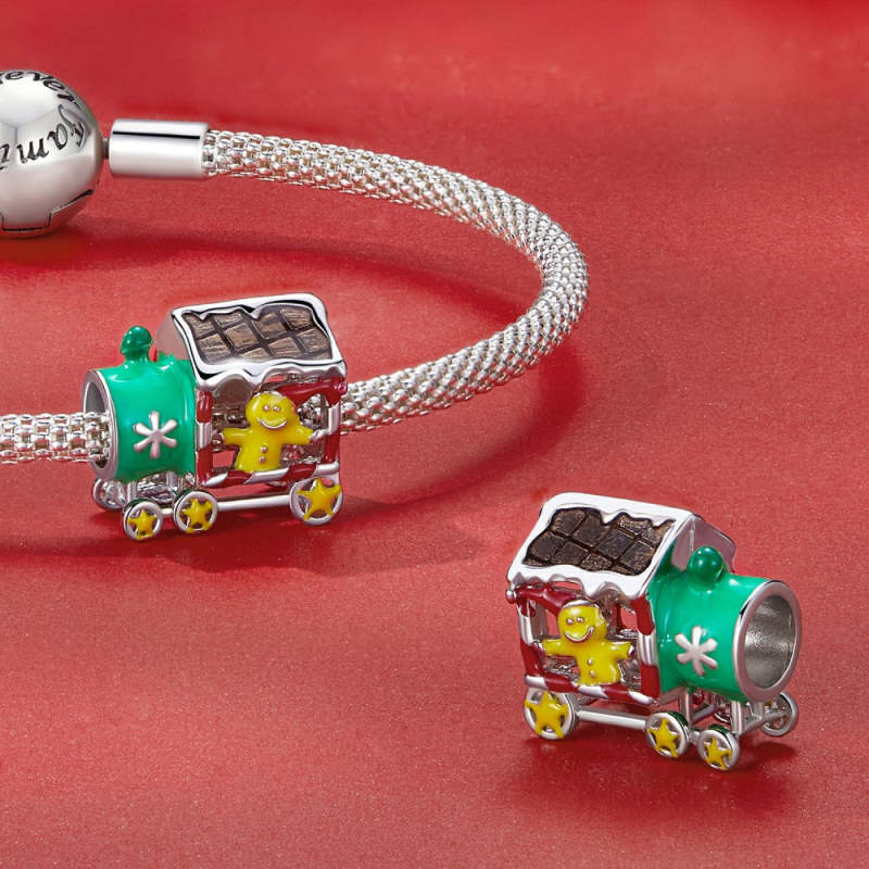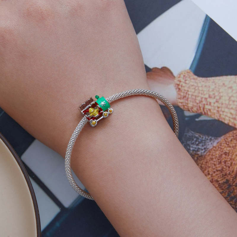 Colgante esmaltado de tren navideño, regalos de Navidad de plata