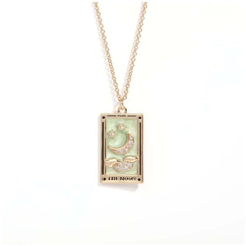 El collar simbólico de cartas del tarot de colores es un collar con colgante inspirado en la carta del tarot y elaborado en esmalte de colores. Está elaborado con metal y circón para añadir brillo y encanto. Posee alta durabilidad y propiedades antioxidantes.