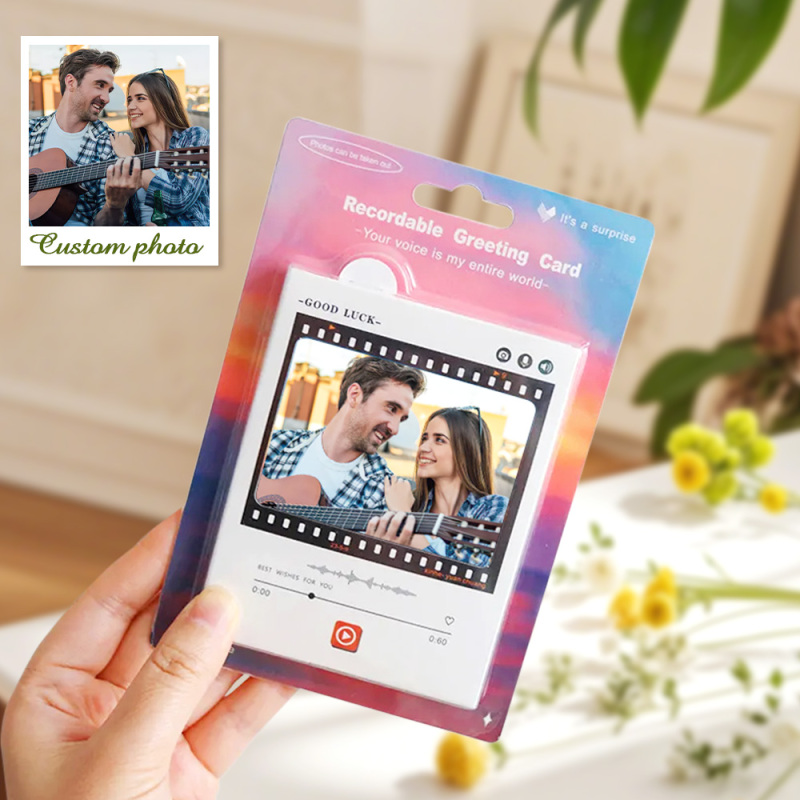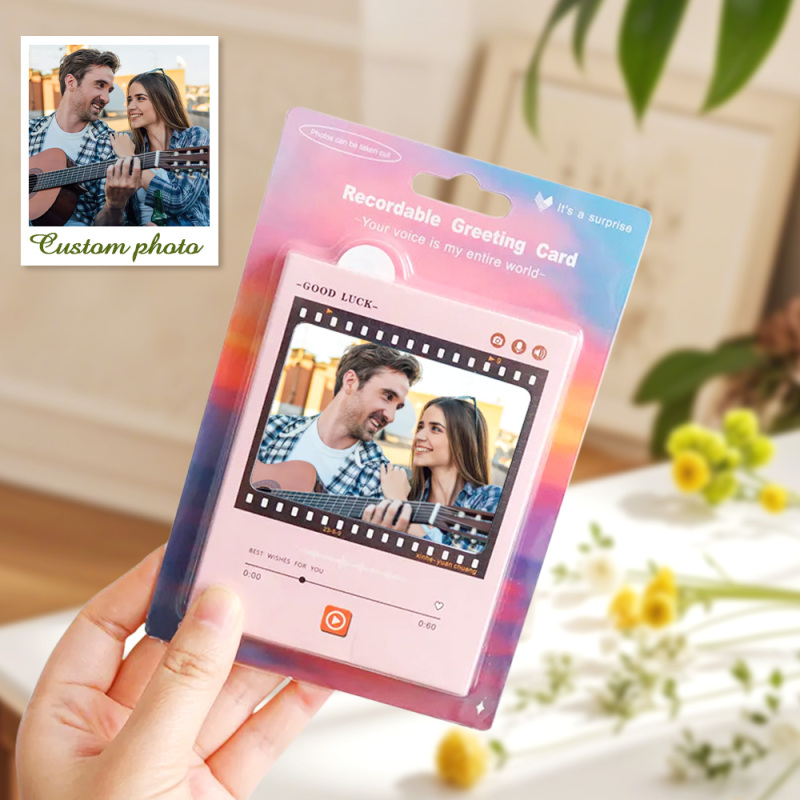 Nuestras tarjetas de felicitación con sonido le permiten grabar su propio mensaje sincero y cargar una imagen personalizada. Haz que cualquier ocasión sea especial con este regalo único y personal.