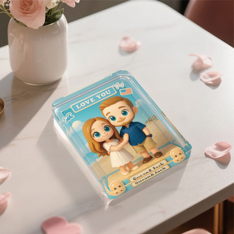 Sorprende a tus seres queridos con nuestras minifiguras 3D personalizadas. Transforma recuerdos preciosos en recuerdos físicos con fotos personalizadas para decorar tu escritorio. Este regalo único combina el encanto coleccionable de las minifiguras con la diversión del descubrimiento, lo que lo convierte en el regalo perfecto para que las parejas atesoren su historia de amor.Tamaño: 9,1 x 1 x 12,1 cm