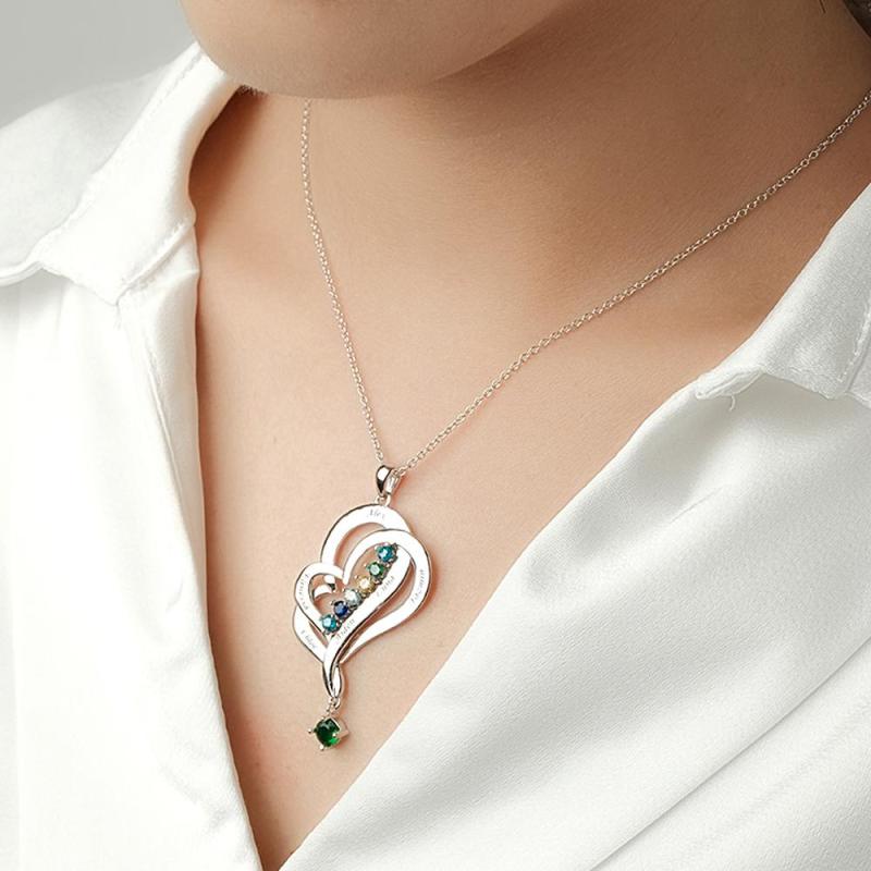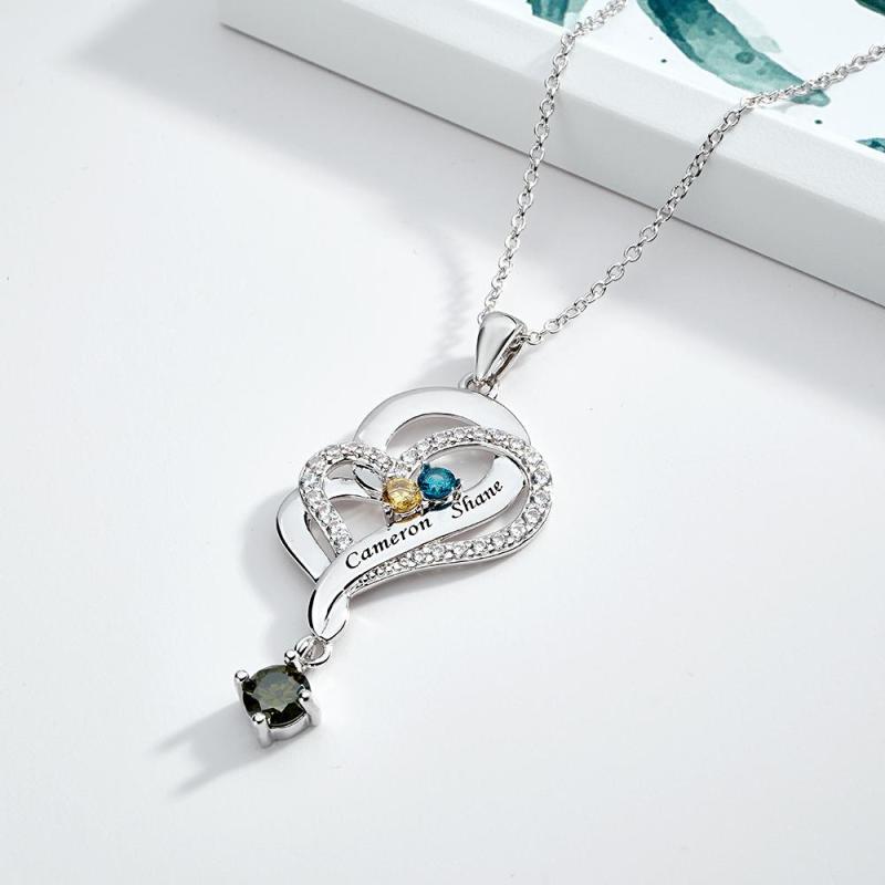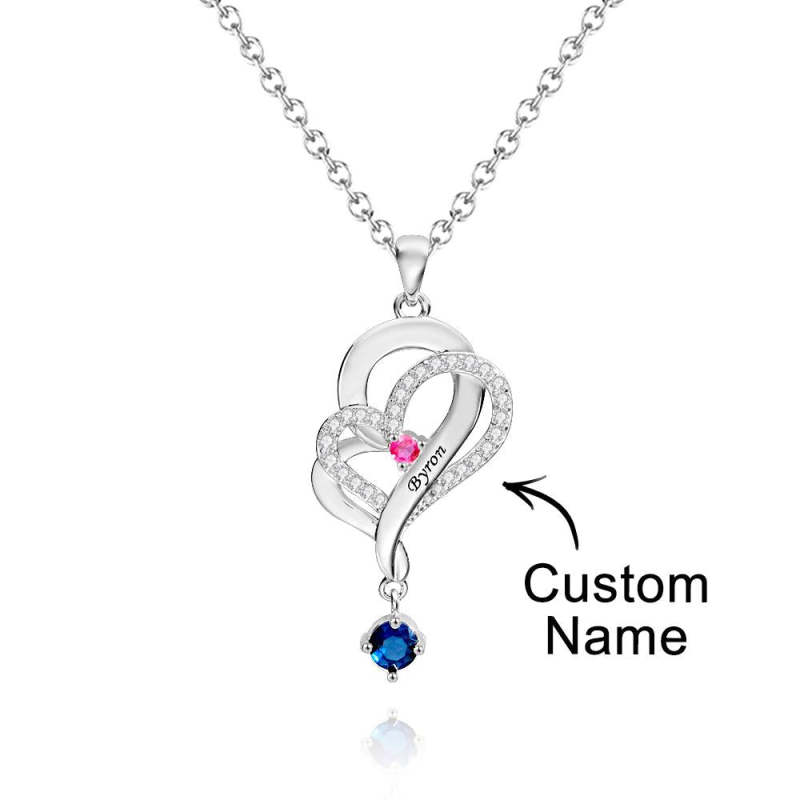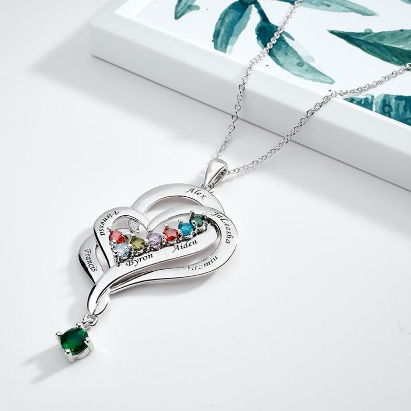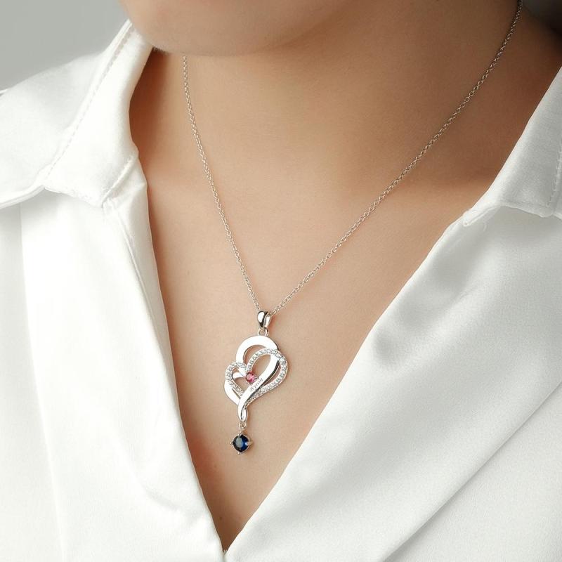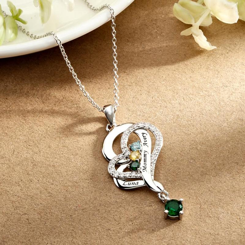 Hay 12 colores diferentes de piedras preciosas, correspondientes a la piedra de nacimiento de cada mes. Los collares con colgante de doble corazón simbolizan el amor mutuo, adecuados como regalos de Navidad para mujeres, regalos del Día de la Madre, regalos de cumpleaños, regalos de boda y regalos de aniversario para su esposa, novia o mujer.