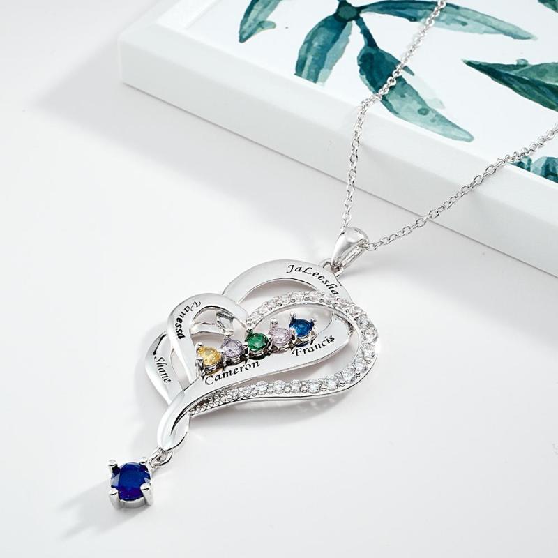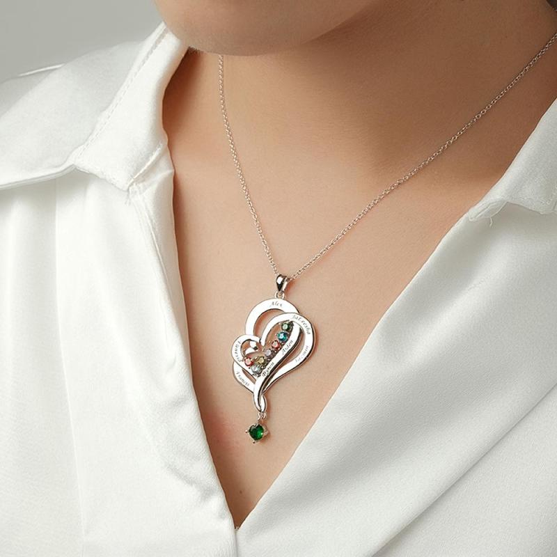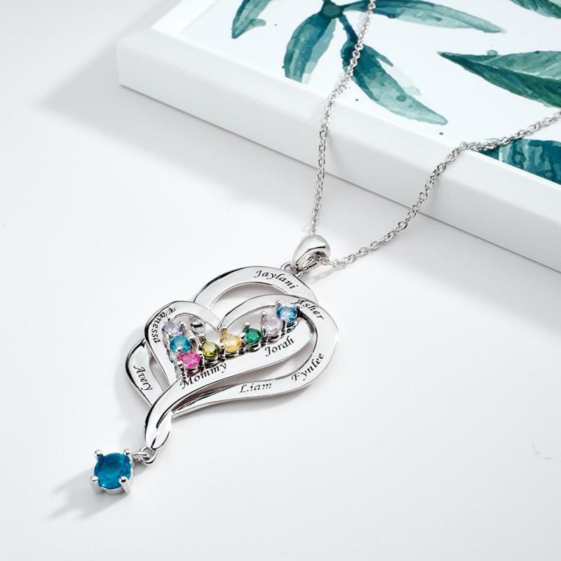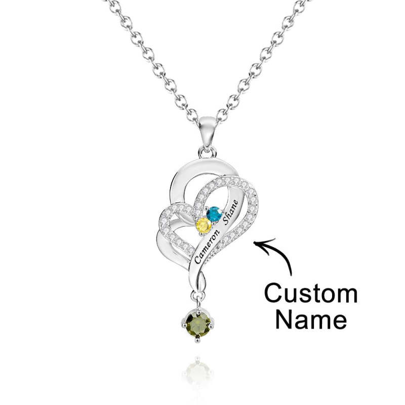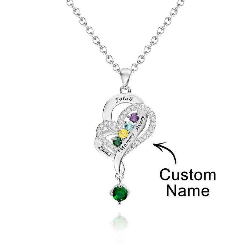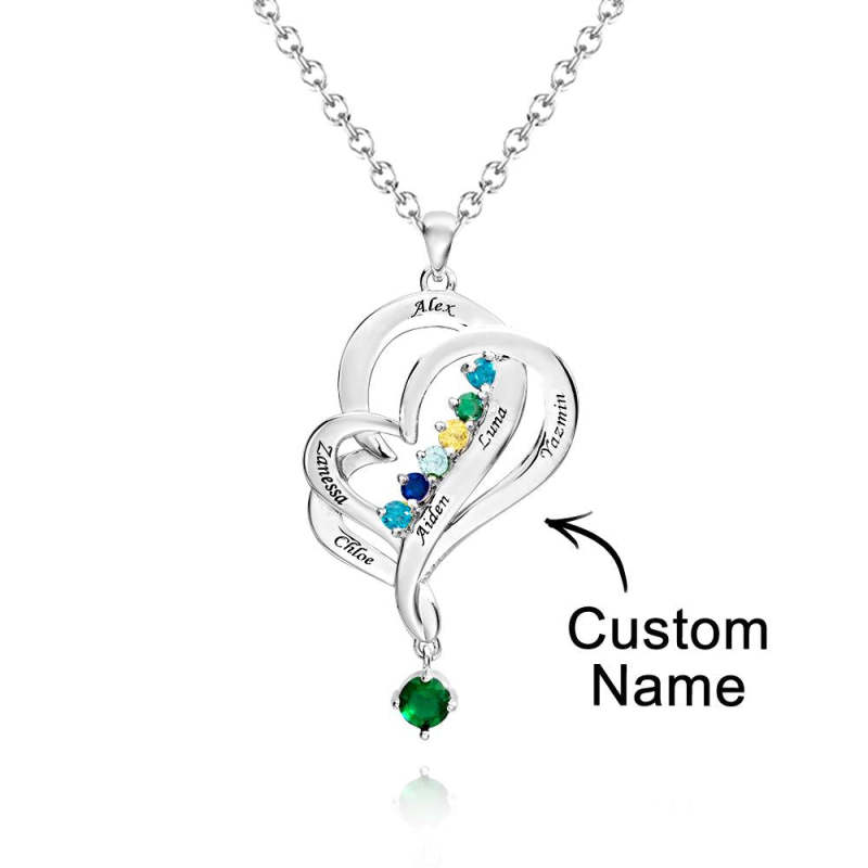 Hay 12 colores diferentes de piedras preciosas, correspondientes a la piedra de nacimiento de cada mes. Los collares con colgante de doble corazón simbolizan el amor mutuo, adecuados como regalos de Navidad para mujeres, regalos del Día de la Madre, regalos de cumpleaños, regalos de boda y regalos de aniversario para su esposa, novia o mujer.