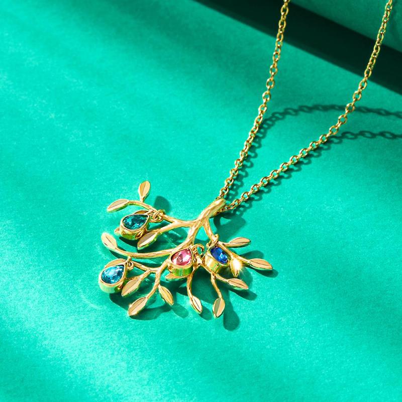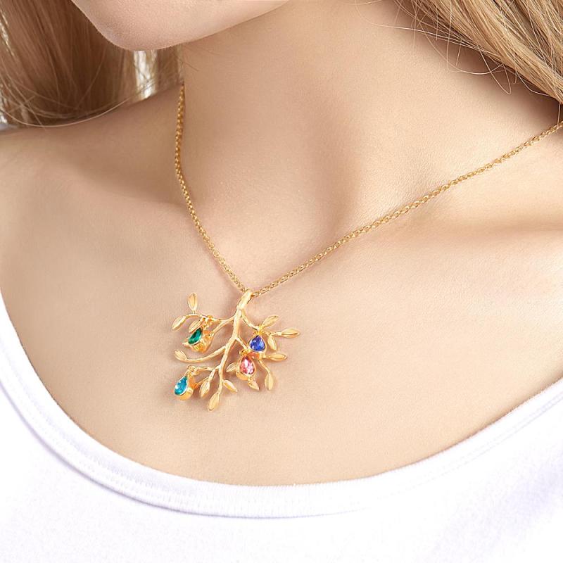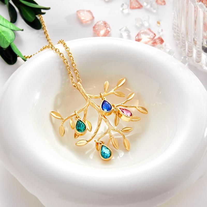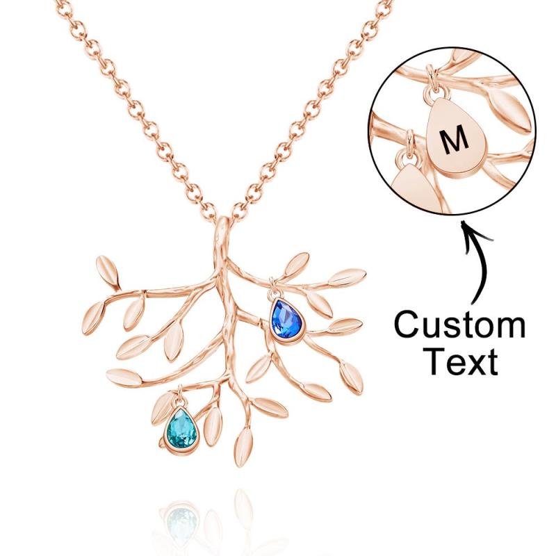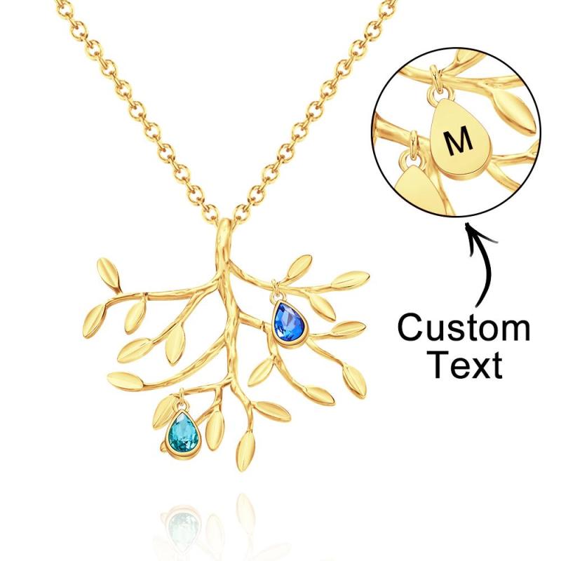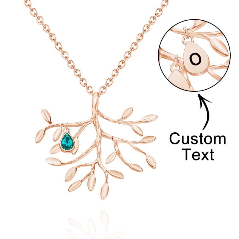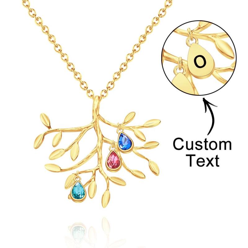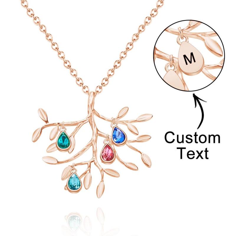 Collar Personalizado Con Piedra Natal Grabada, Collar De Árbol Genealógico, Regalo Para Ella